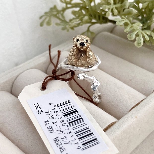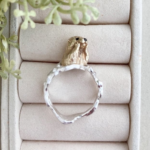水面から顔を出して愛くるしいポーズを披露しているラッコのリング。