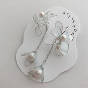 透け感のあるカラーが大人可愛いお花のピアスです。