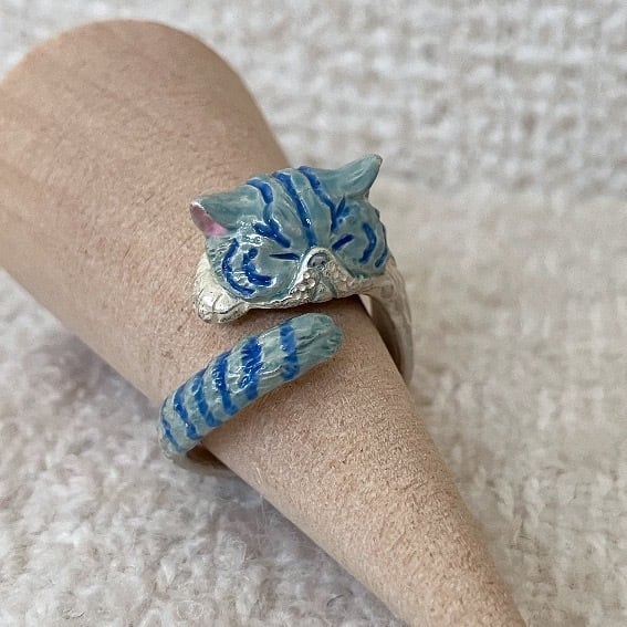すやすやと気持ちよさそうに寝ている猫のリング。