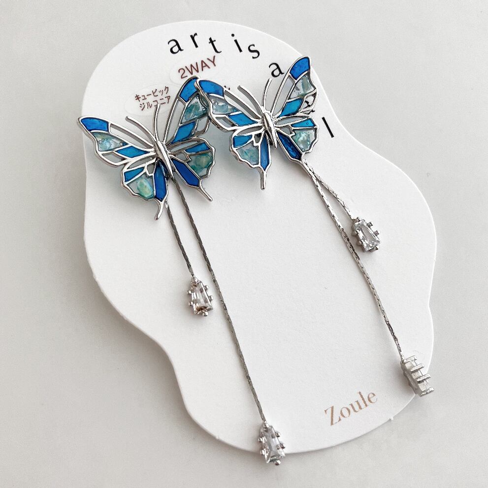 Zoule stained butteyfly 2wayピアス 蝶 シルバー ゾーラ 送料無料