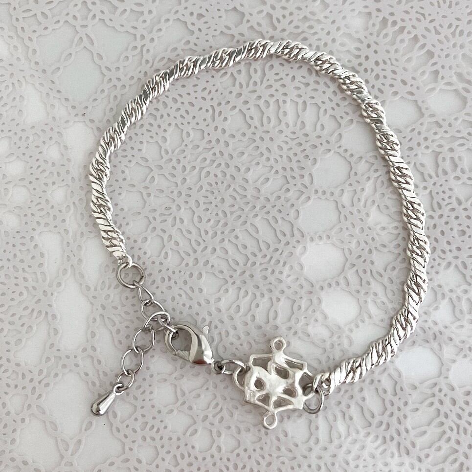 スルスルと滑るように進むヘビをイメージした、ホワイトシルバーの個性的なブレスレット。