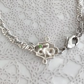 白ヘビのチャームは、カリグラフィーを思わせる優美なフレームに包まれ、淡い緑色のカットガラスが上品にきらめきます。