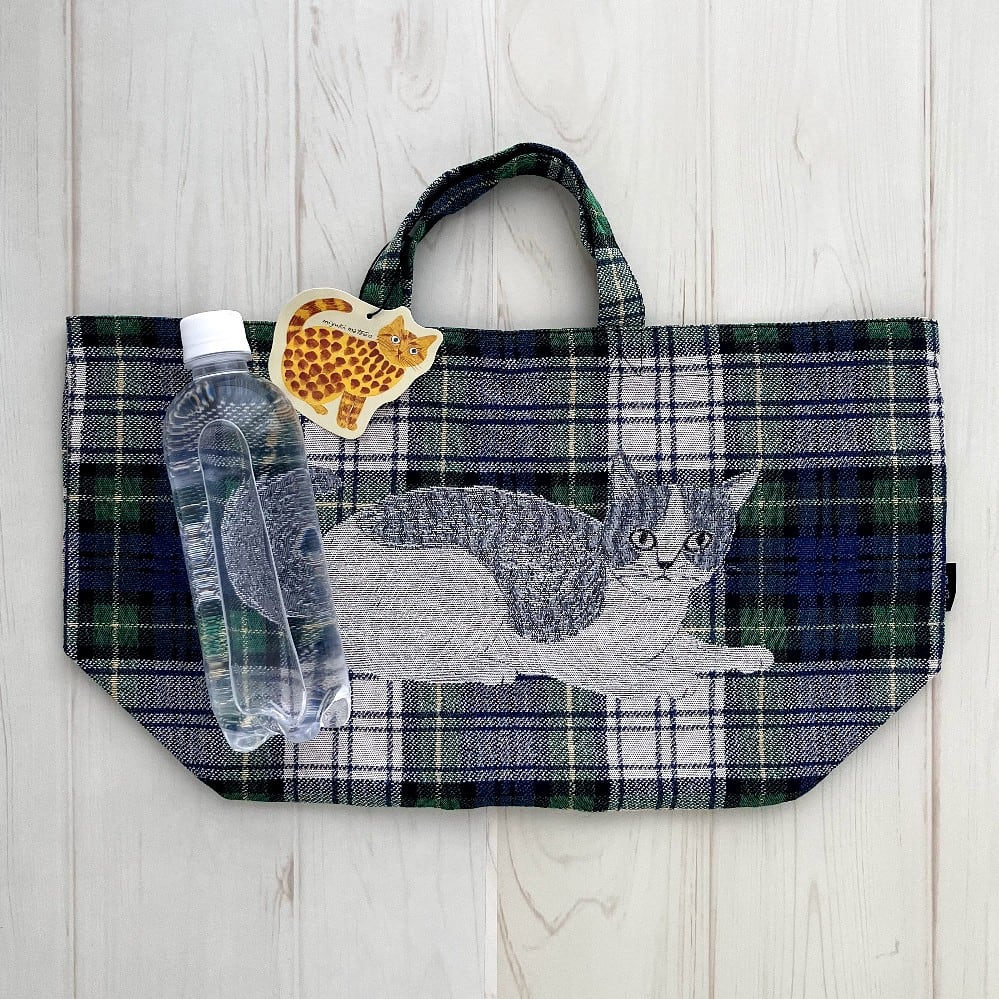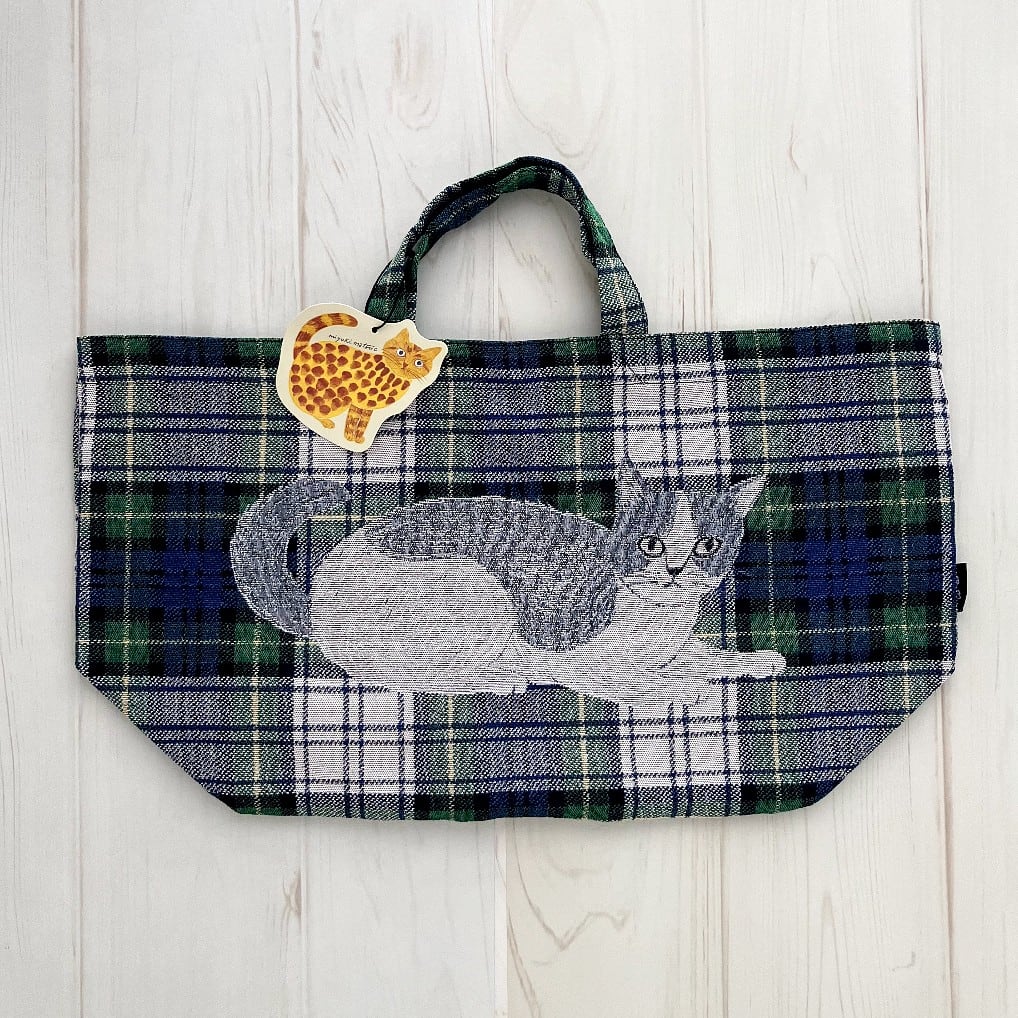 松尾ミユキ ボート&トート トートバッグ Ruru ねこ 猫 チェック柄 グリーン