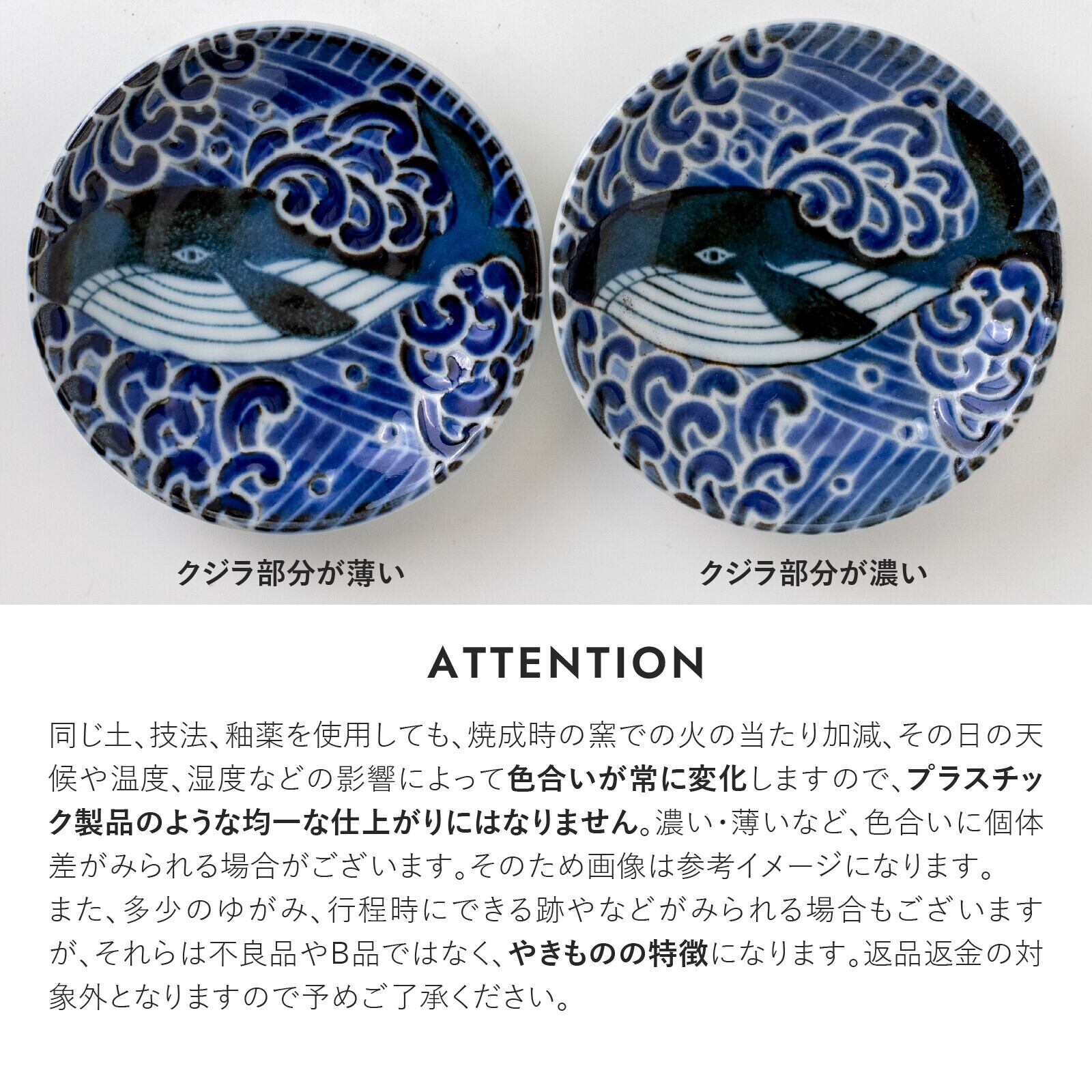 内側にも外側にも荒波を泳ぐクジラが描かれた小さめの丼です。