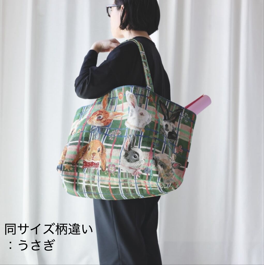 その不思議な世界を、重厚感あるゴブラン織りで仕立てたマーケットバッグです。