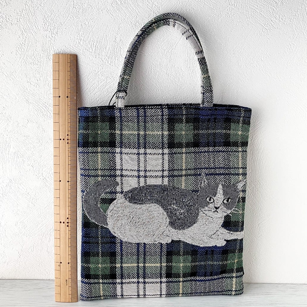 松尾ミユキさんが描くネコや日用品のモチーフを、ゴブラン織りのあたたかな布に落とし込んだ、小さなトートバッグです。