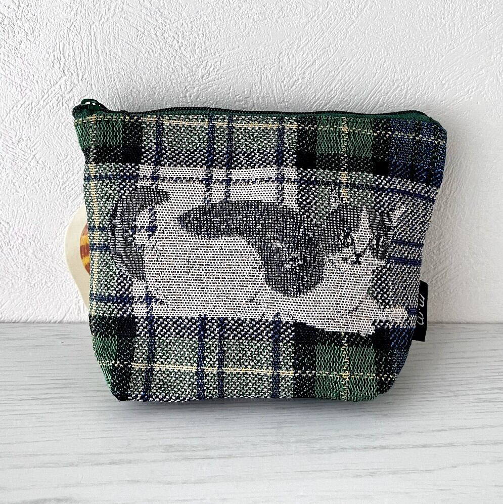 松尾ミユキさんのやさしいタッチで描かれたネコたちが、繊細なゴブラン織りで丁寧に表現されたポーチです。