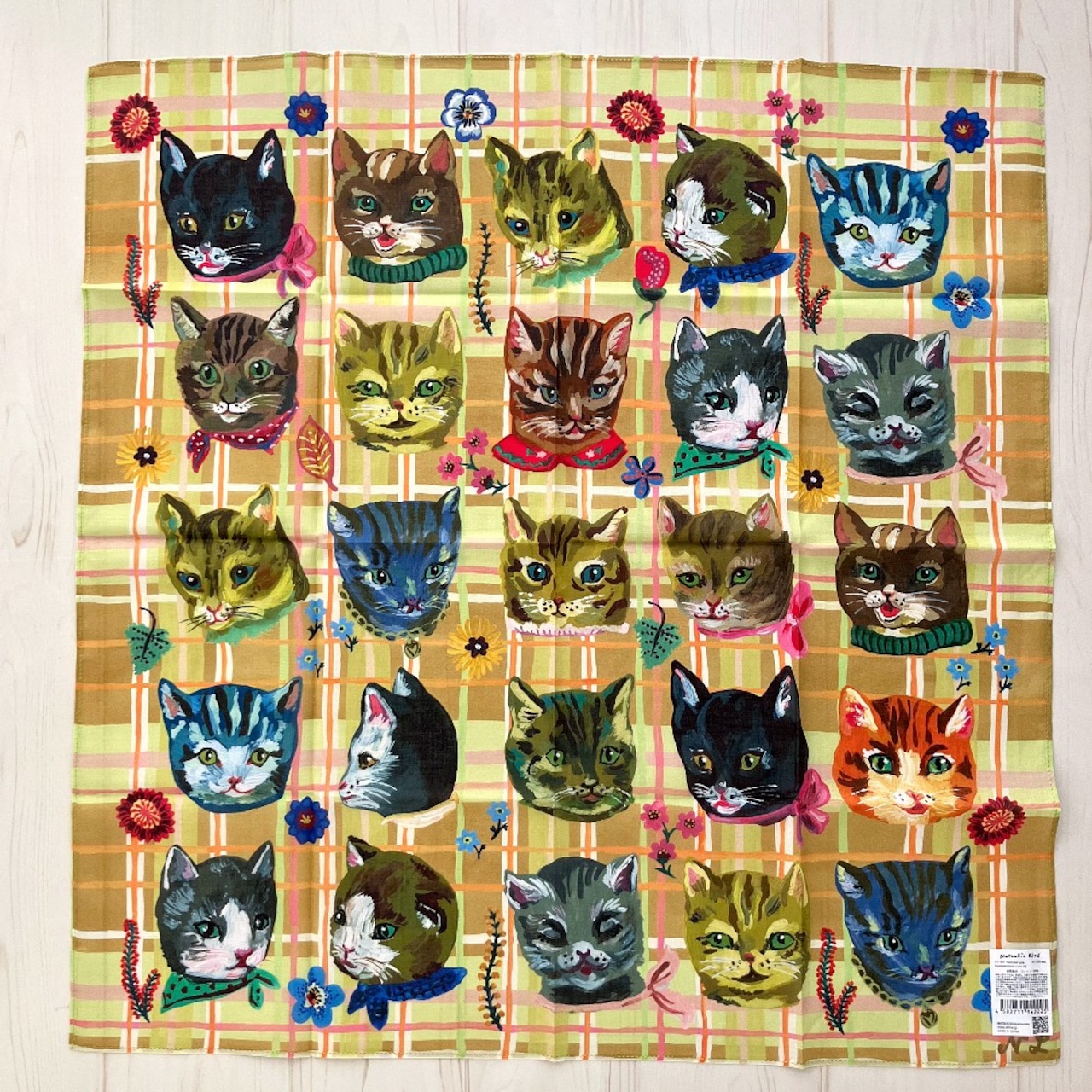 ナタリーレテ ハンカチ 60cm×60cm 猫 ねこ イエロー