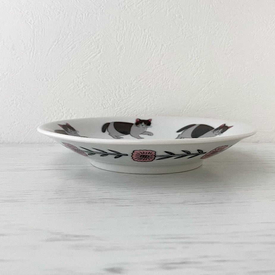 プレートにぐるりと描かれた松尾ミユキさんによるネコたちのイラストが食卓を彩ります。