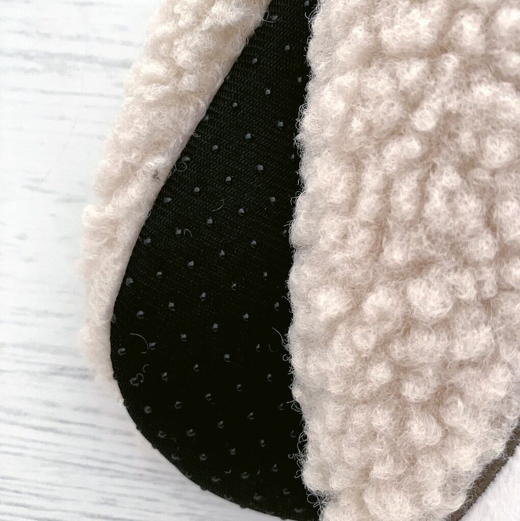 冬にピッタリのボア素材を使ったもこもこルームシューズ。