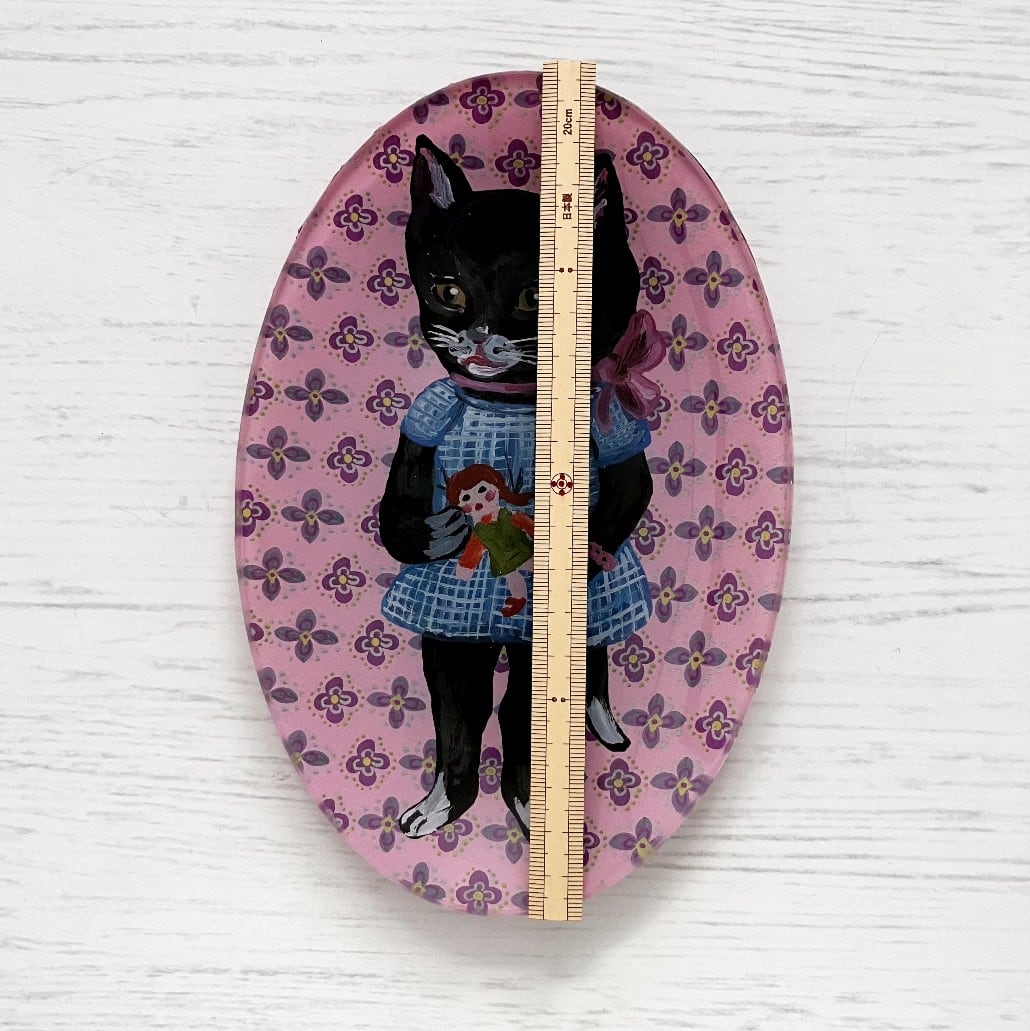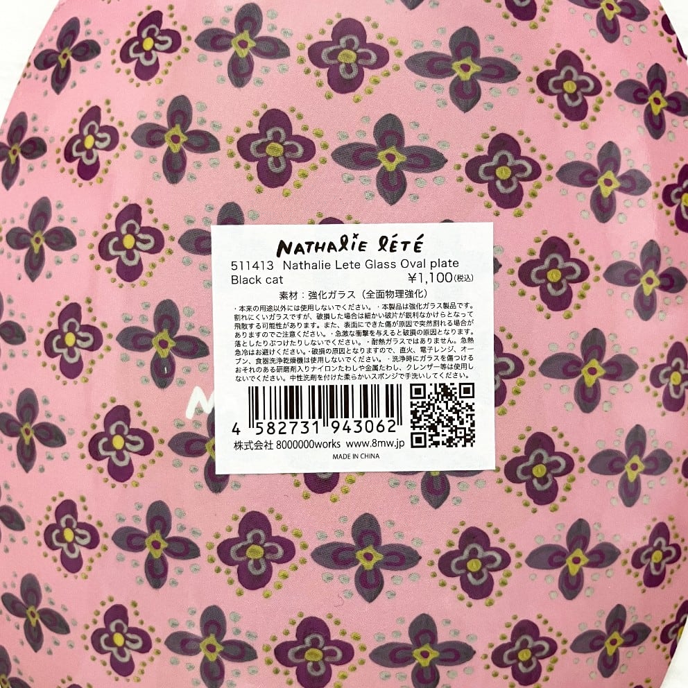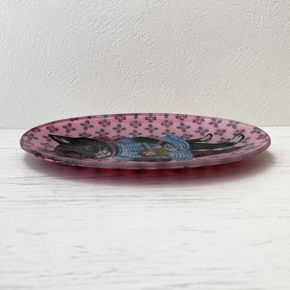 ナタリーレテ ガラスオーバルプレート 20cmサイズ 猫 ねこ Black cat