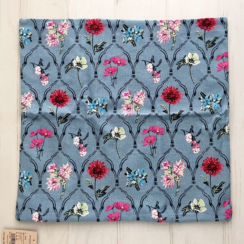 Bergamotの上品なプリントのクッションカバー。 模様替えで印象が変わるのでポイントでおすすめです。