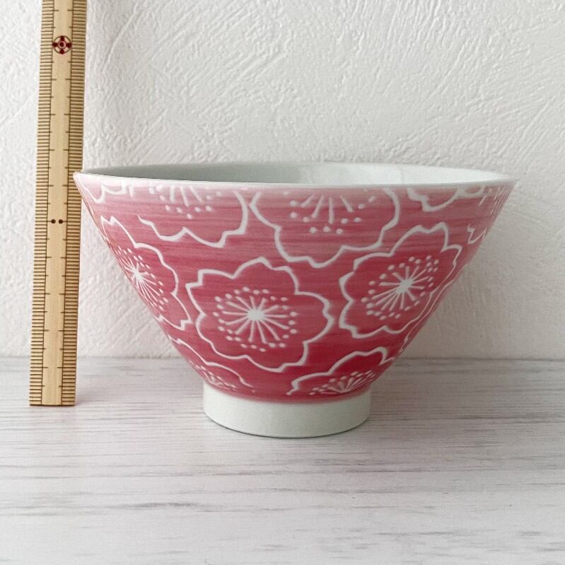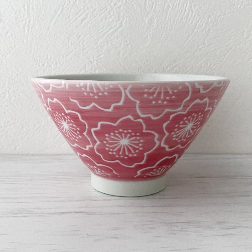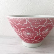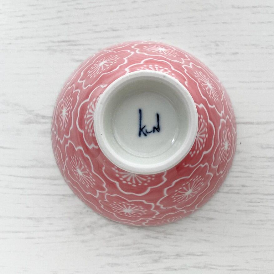 波佐見焼 勲山窯 茶碗 白花唐草 ピンク