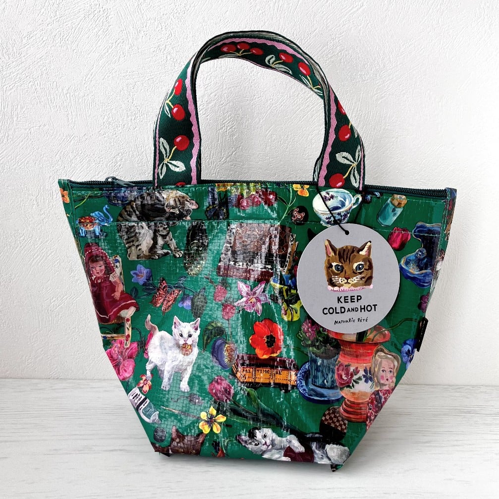 ナタリーレテ 保冷バックS ランチトート Cats ねこ 猫 グリーン