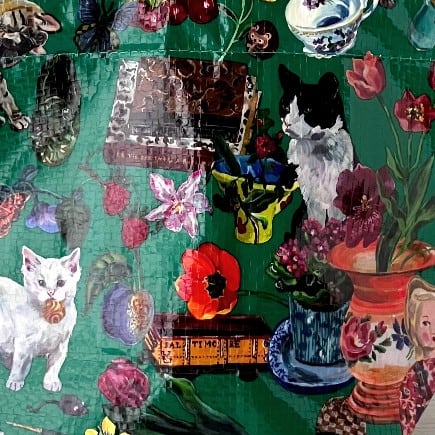 ナタリー・レテさんの色鮮やかな総柄イラストが楽しい、コンパクトな保冷バッグです。