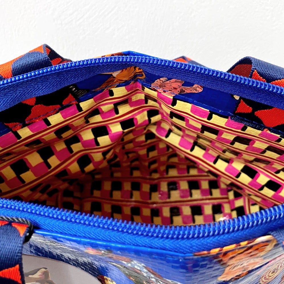 ナタリー・レテさんの色鮮やかな総柄イラストが楽しい、コンパクトな保冷バッグです。