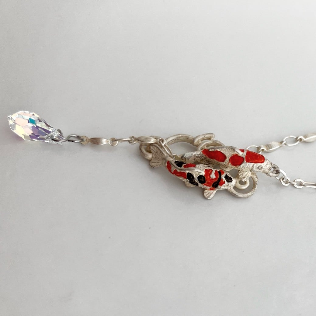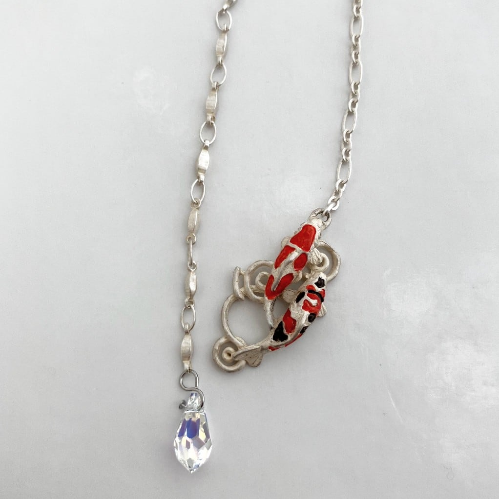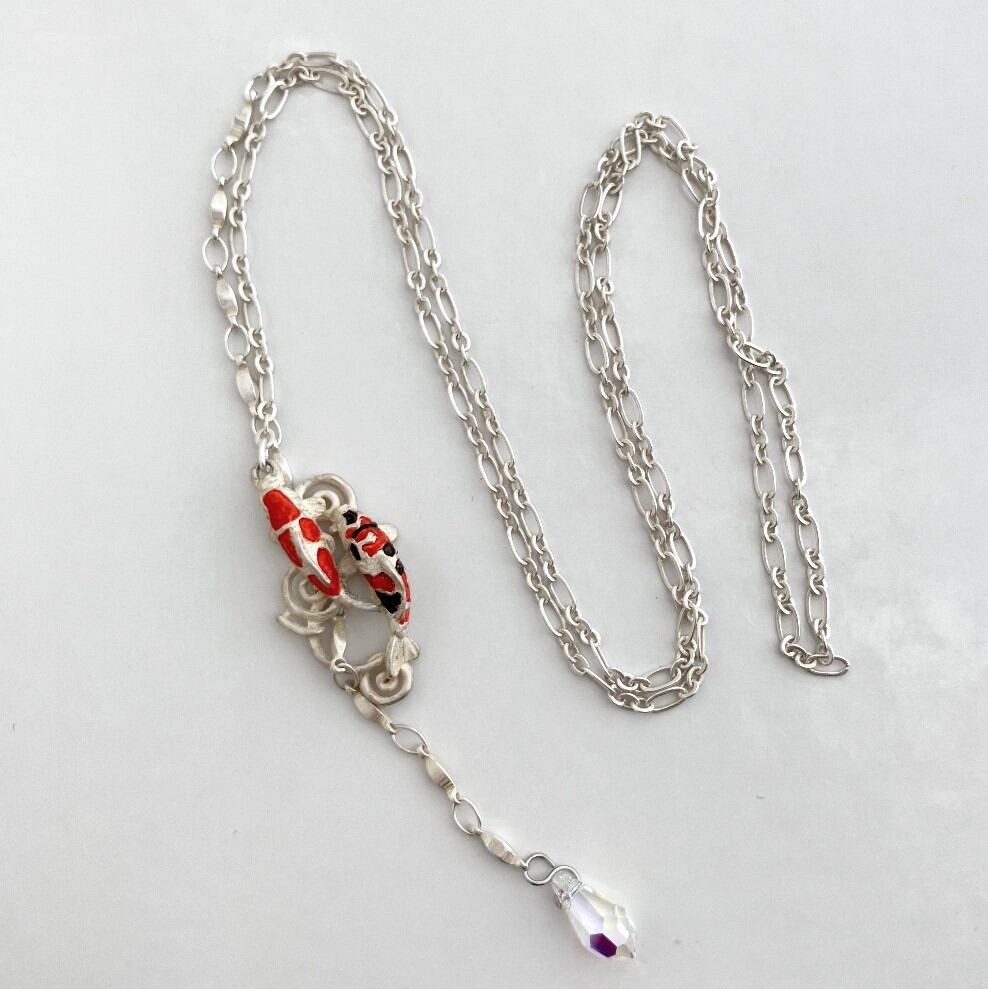 水の中を優雅に泳ぐ錦鯉がデザインされたラリエットタイプのネックレス。