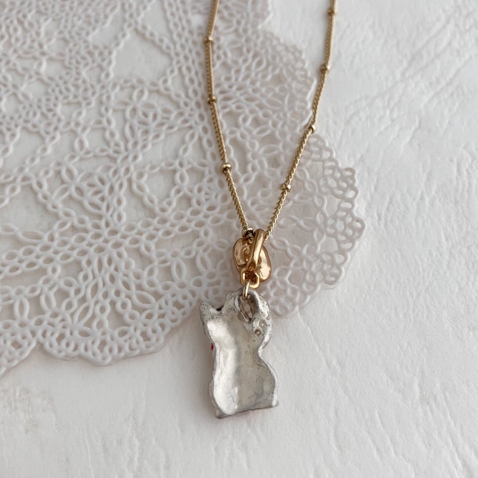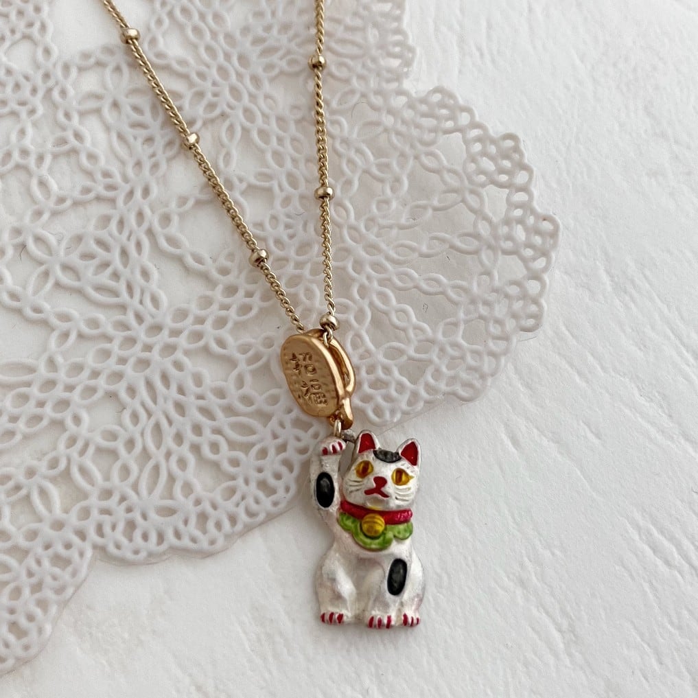 白のまねきねこがデザインされたネックレス。
