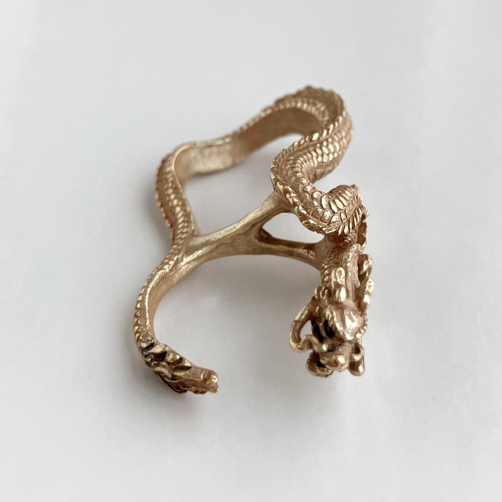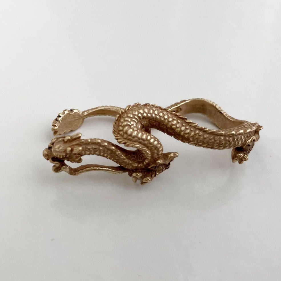落ち着きのある肌なじみの良いマットゴールドで表現した龍は、ウロコや髭、鋭い爪まで丁寧に造形され、繊細さが華やかさを際立たせる美しいアイテムです。