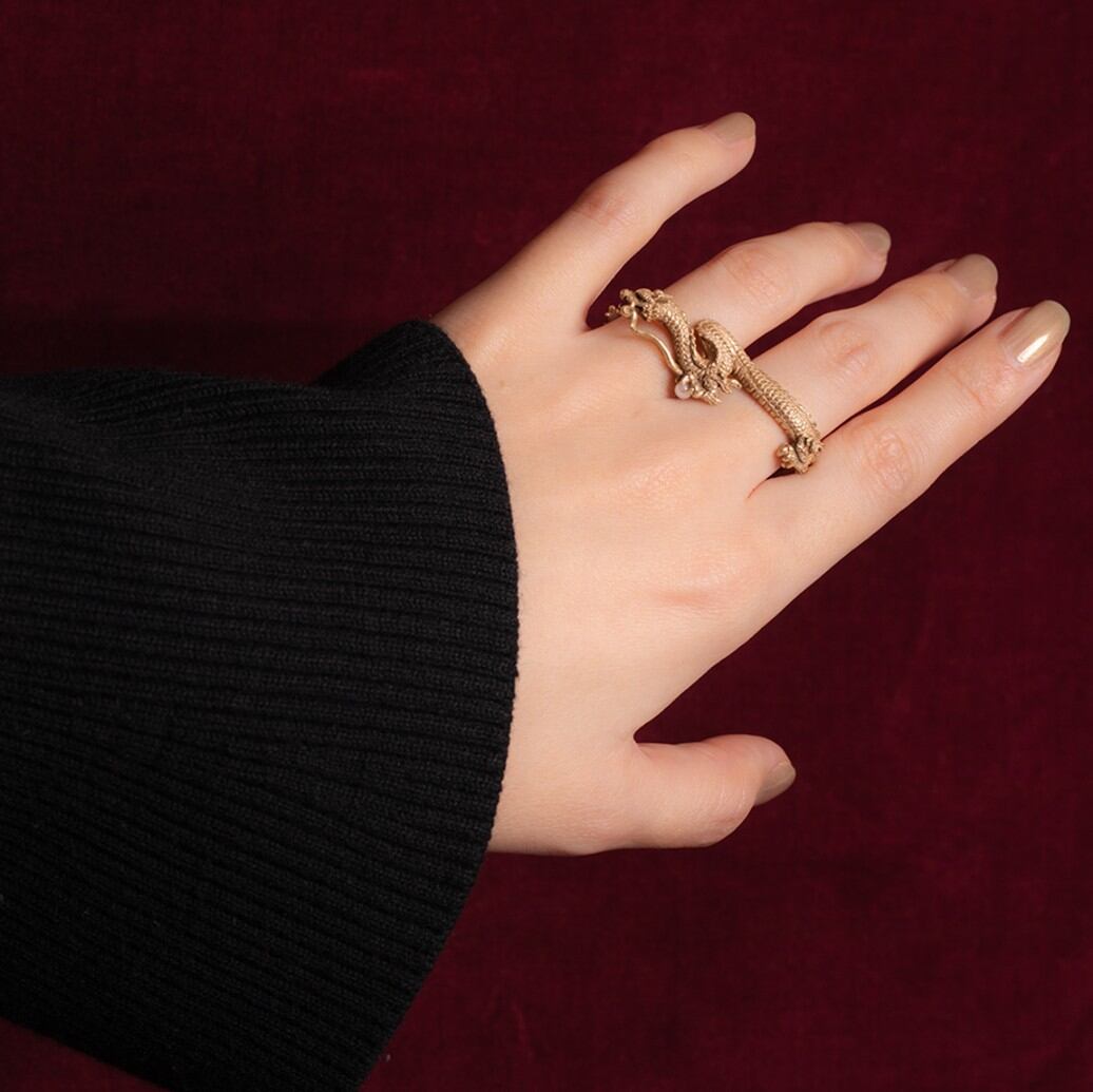 天を駆ける龍がデザインされているダブルフィンガーリング。