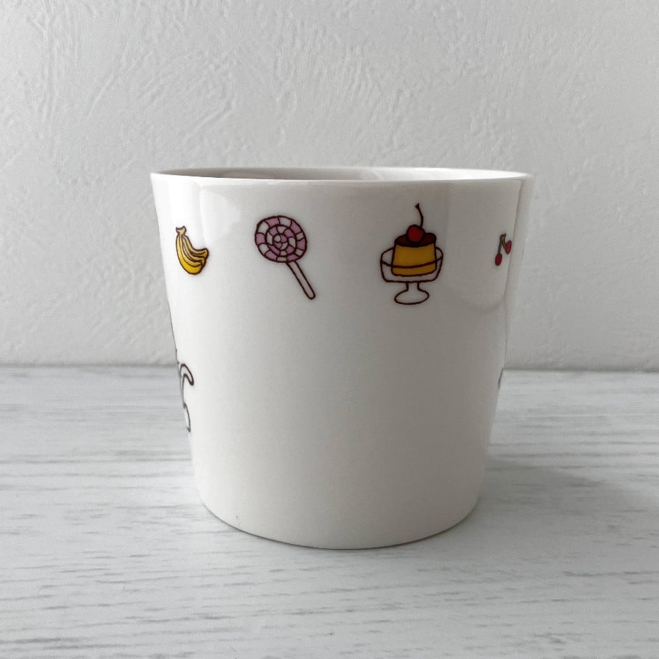 おやつにワクワクしているようなノンタンが描かれたマグカップ。