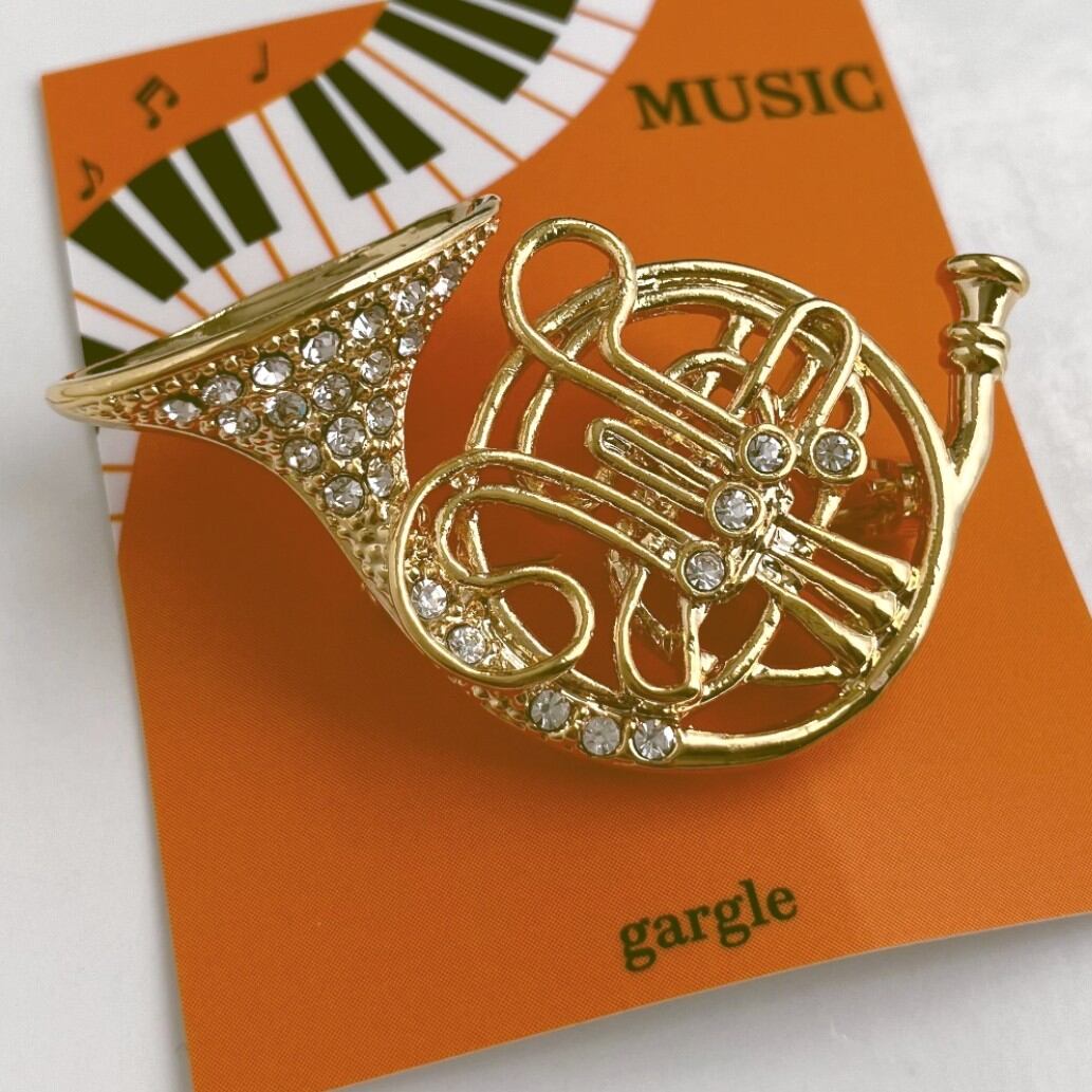 gargle パヴェ楽器 ホルン ブローチ ゴールド ガーグル 送料無料