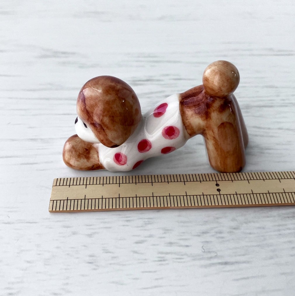 ポップなドット柄のお洋服を着たおしゃれプードルの箸置きです。