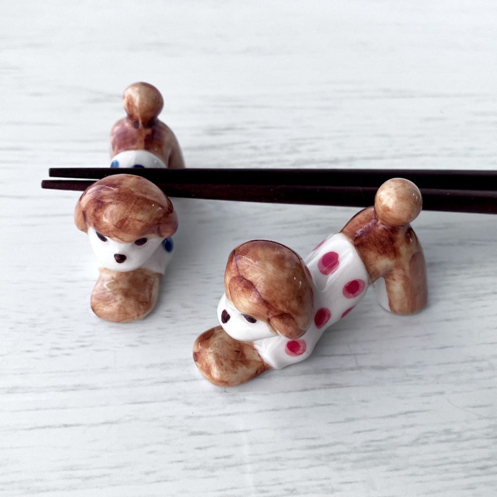 プードル 箸置き 置物 犬 波佐見焼 赤/青