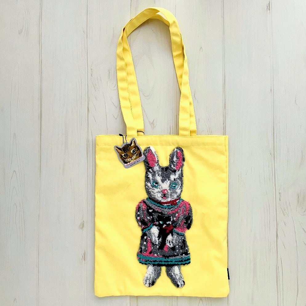 ナタリーレテ もこもこ刺繍のA4サイズトートバッグ レクタングルトートバッグ うさぎ BLANCHE