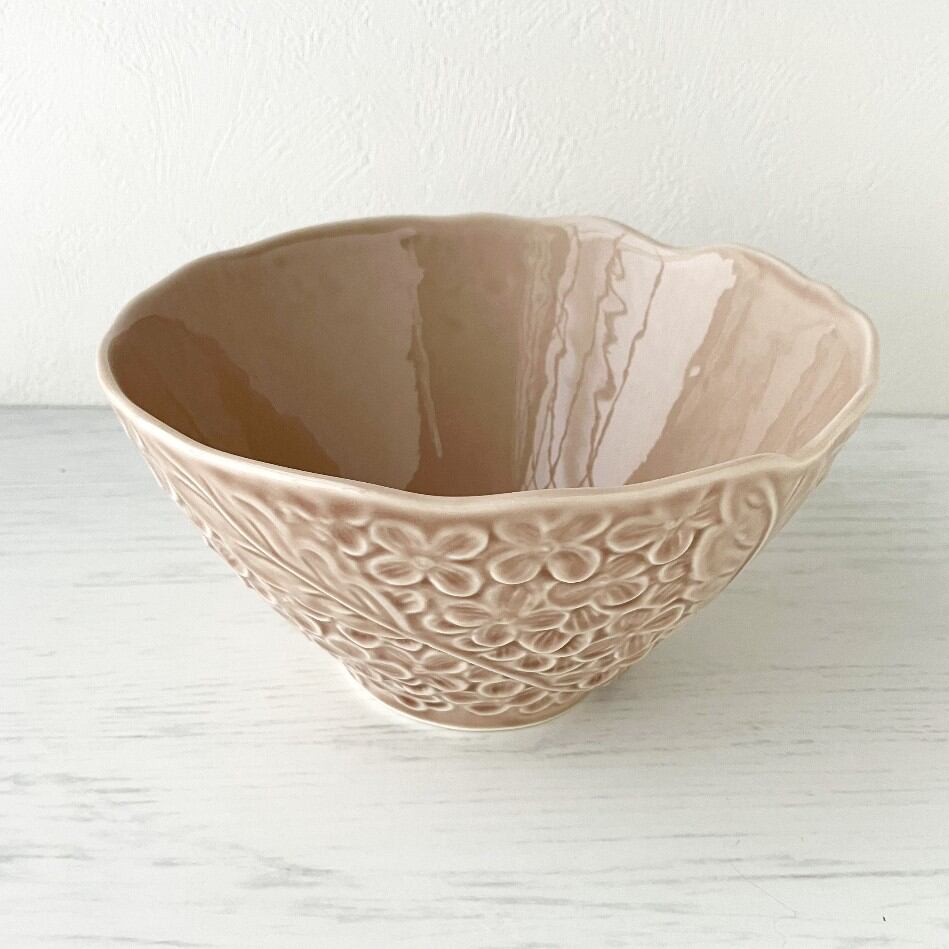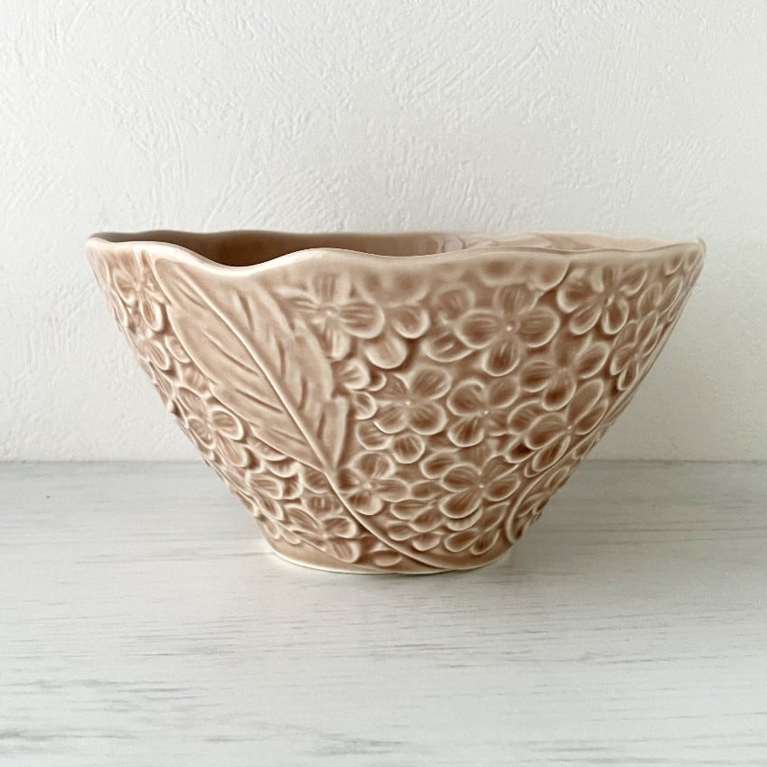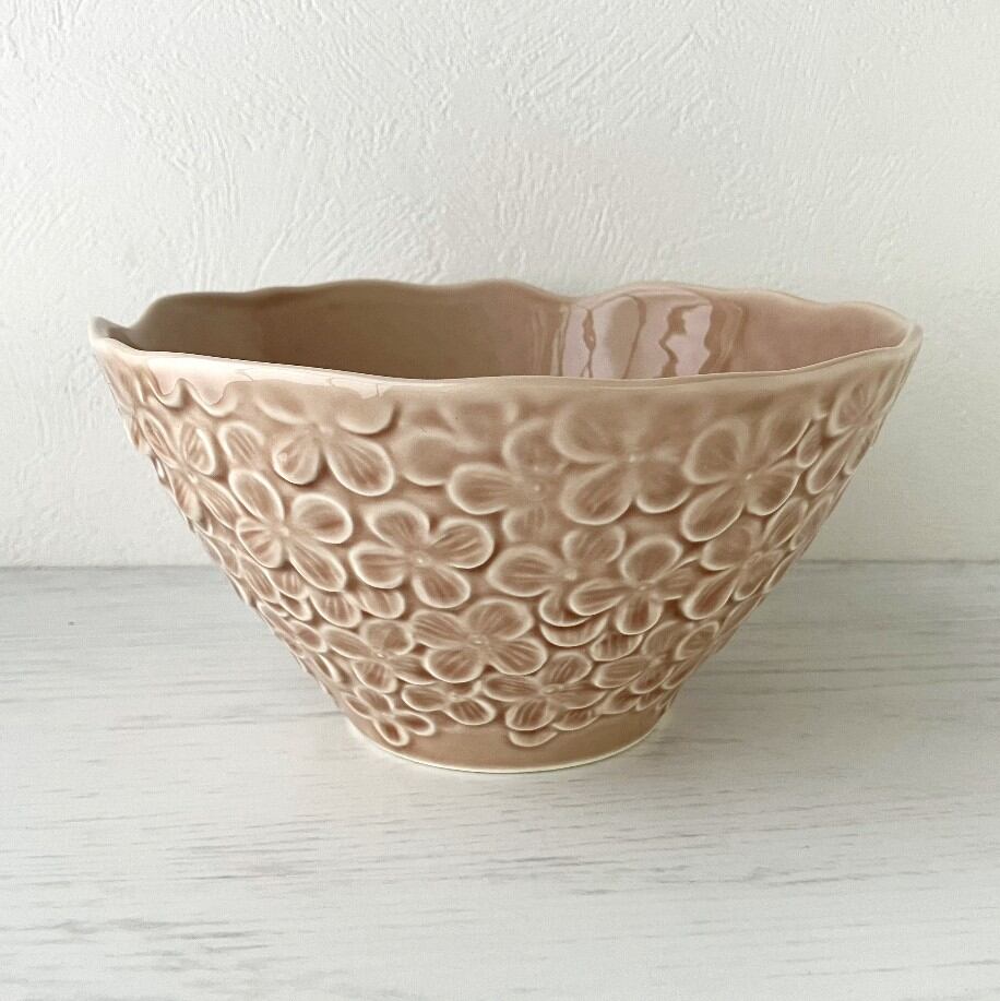 Lien リアン 紫陽花ボウル (L) 丼 ピンクベージュ 花 あじさい モチーフ 美濃焼