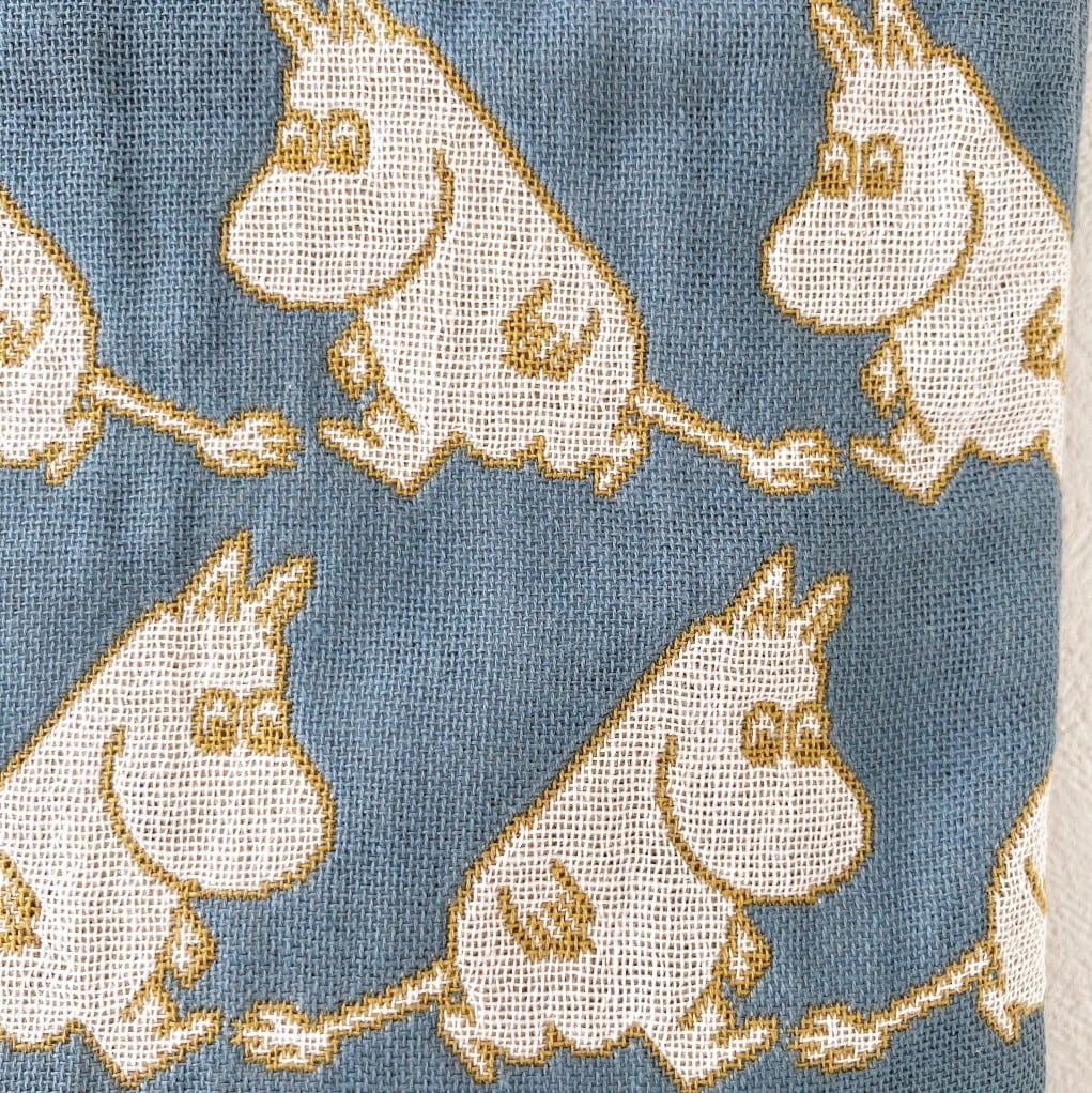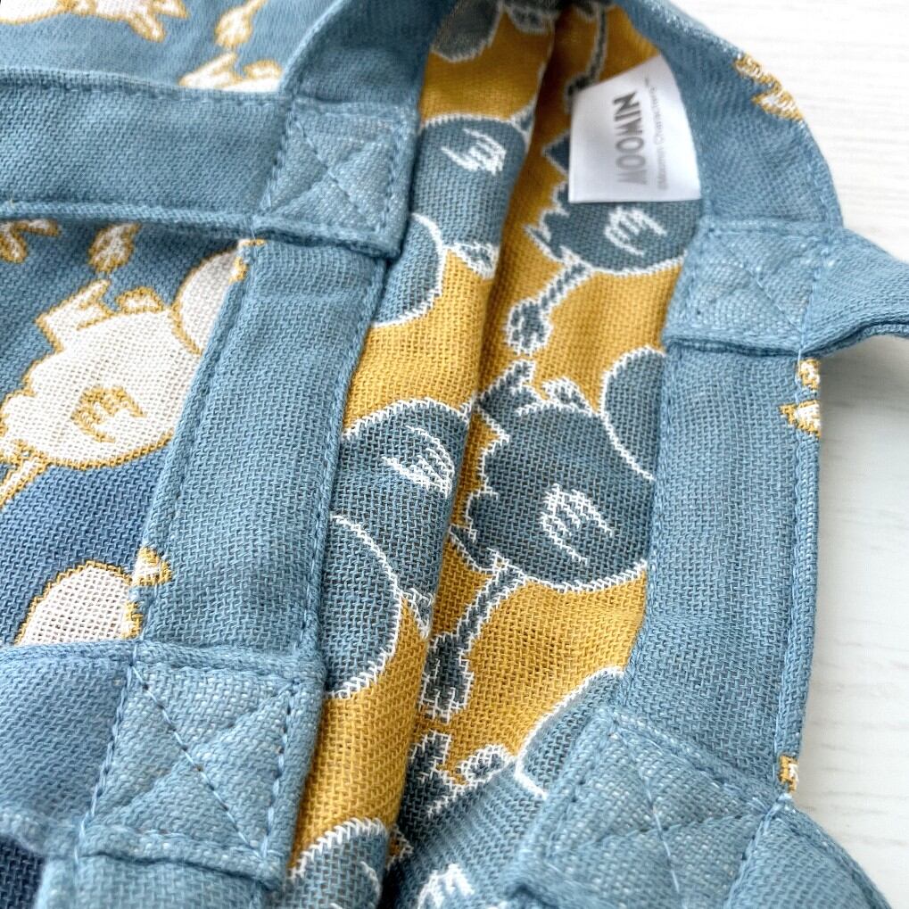 にこにこ笑顔のムーミンがデザインされたガーゼミニバッグです。