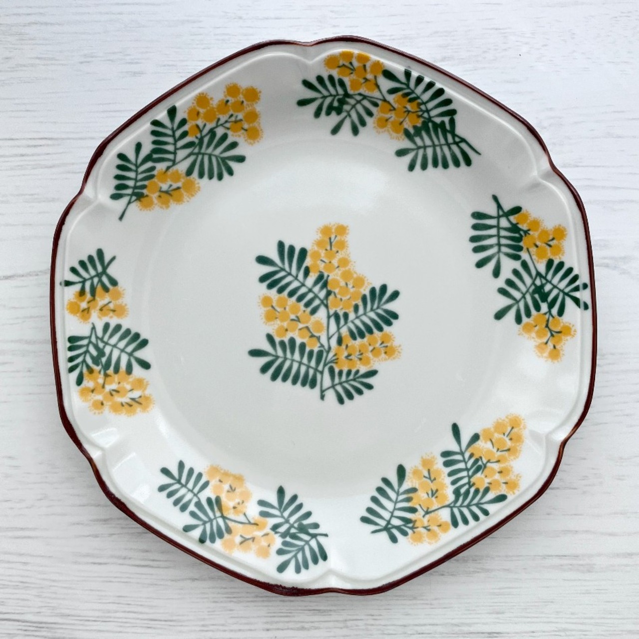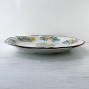 少しアンティーク風の形状のうつわに、花を散らしたデザインです。