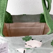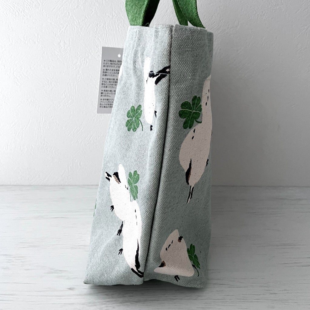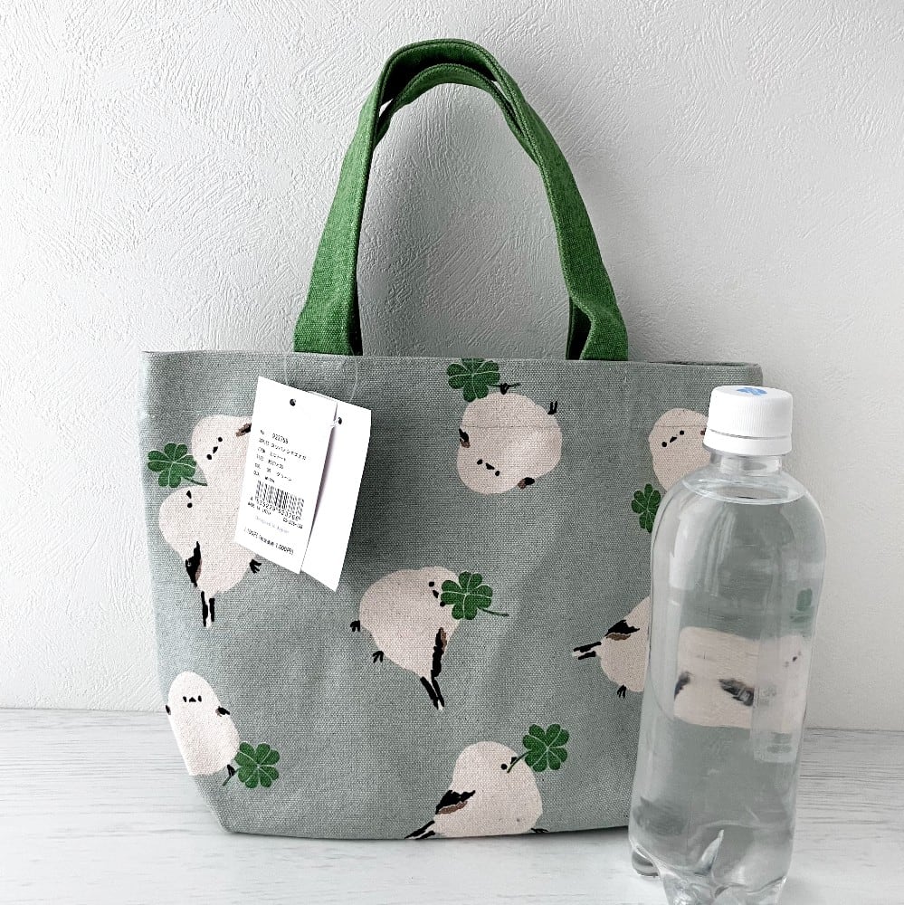 シマエナガと四葉のクローバーが描かれたミニトートバッグです。