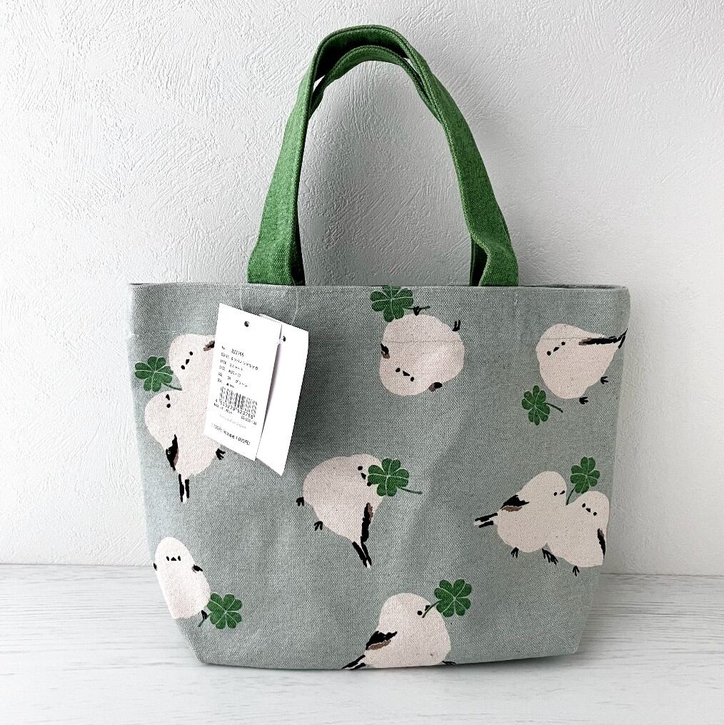 ランチトートバッグ 帆布 ミニトート ヨツバノシマエナガ 鳥 グリーン