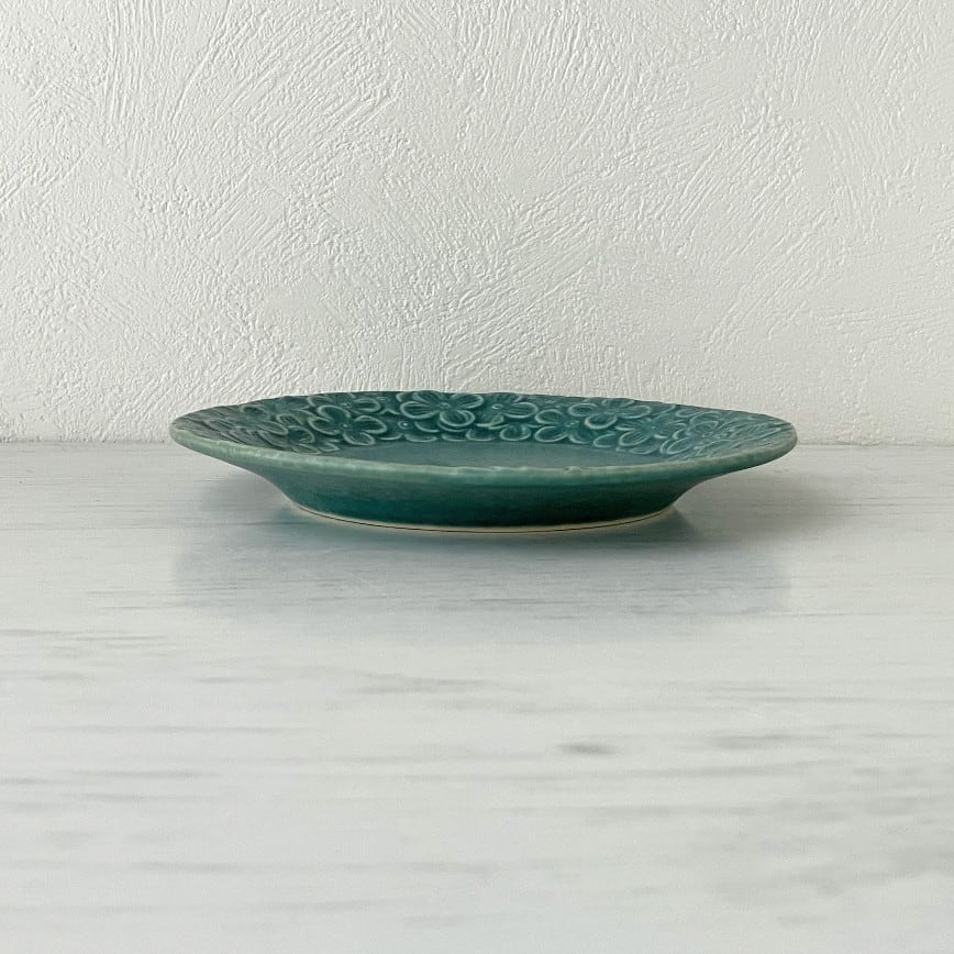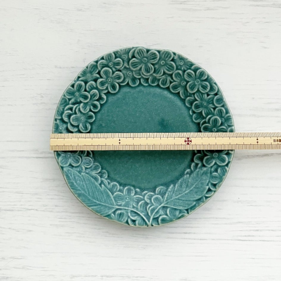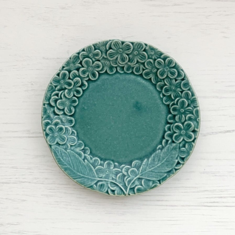 Blossom 13.5cmプレート 皿 エメラルド 花 紫陽花 あじさい 美濃焼