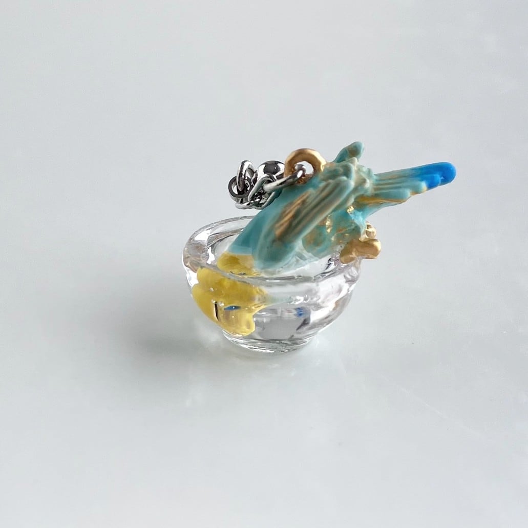 水浴びを楽しむセキセイインコをモチーフにしたピアス。