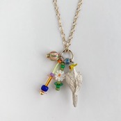 素 材:ピューター、ガラスビーズ、PVC、アセテート、貝、ウッドビーズ、ポリエステル(糸)