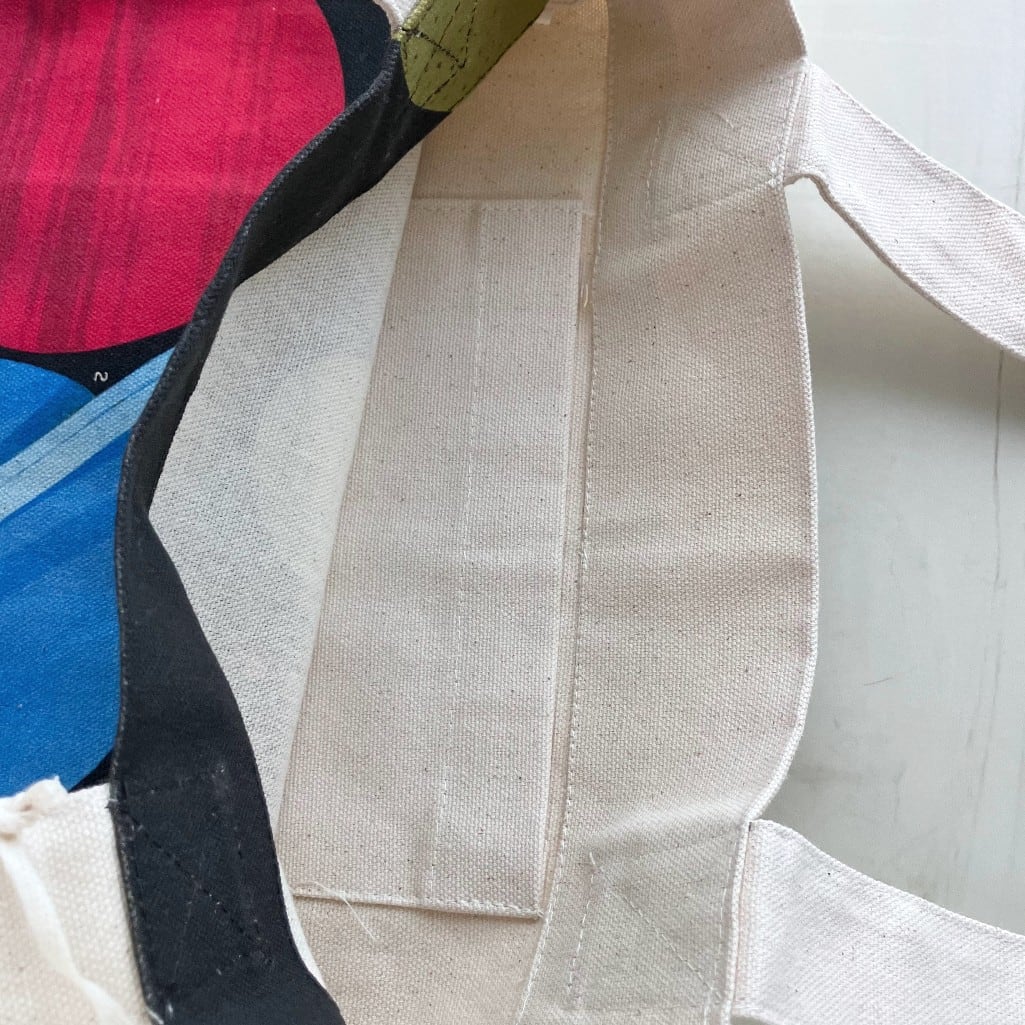 厚手のコットンキャンバスにヴィンテージ調のイラストがプリントされています。
