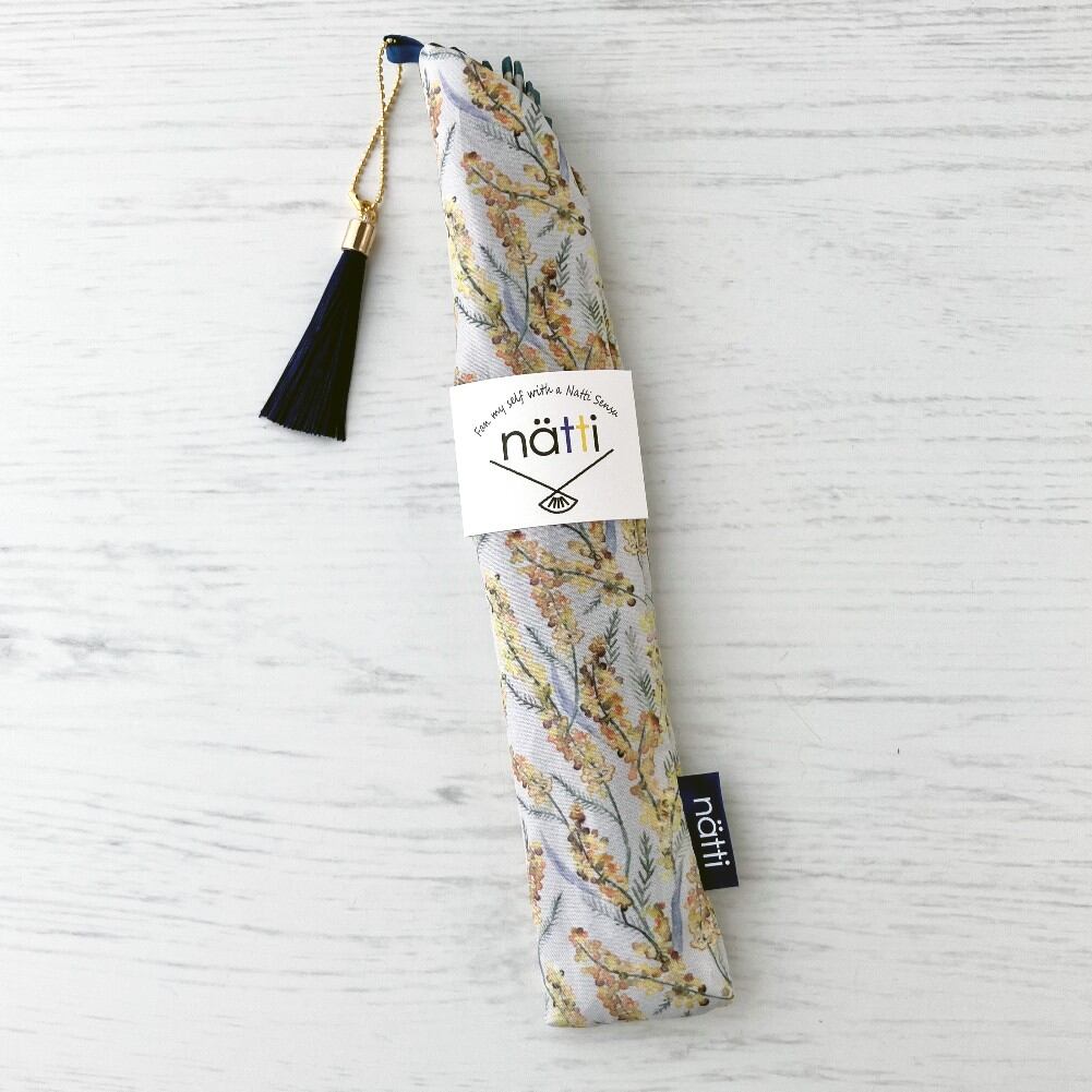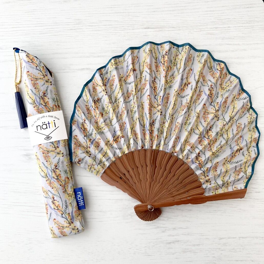 Natti 扇子 せんす ケース付き ミモザ柄 花柄