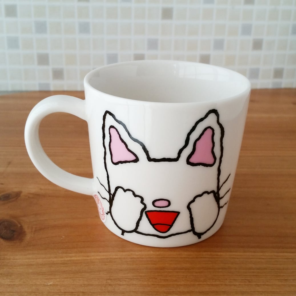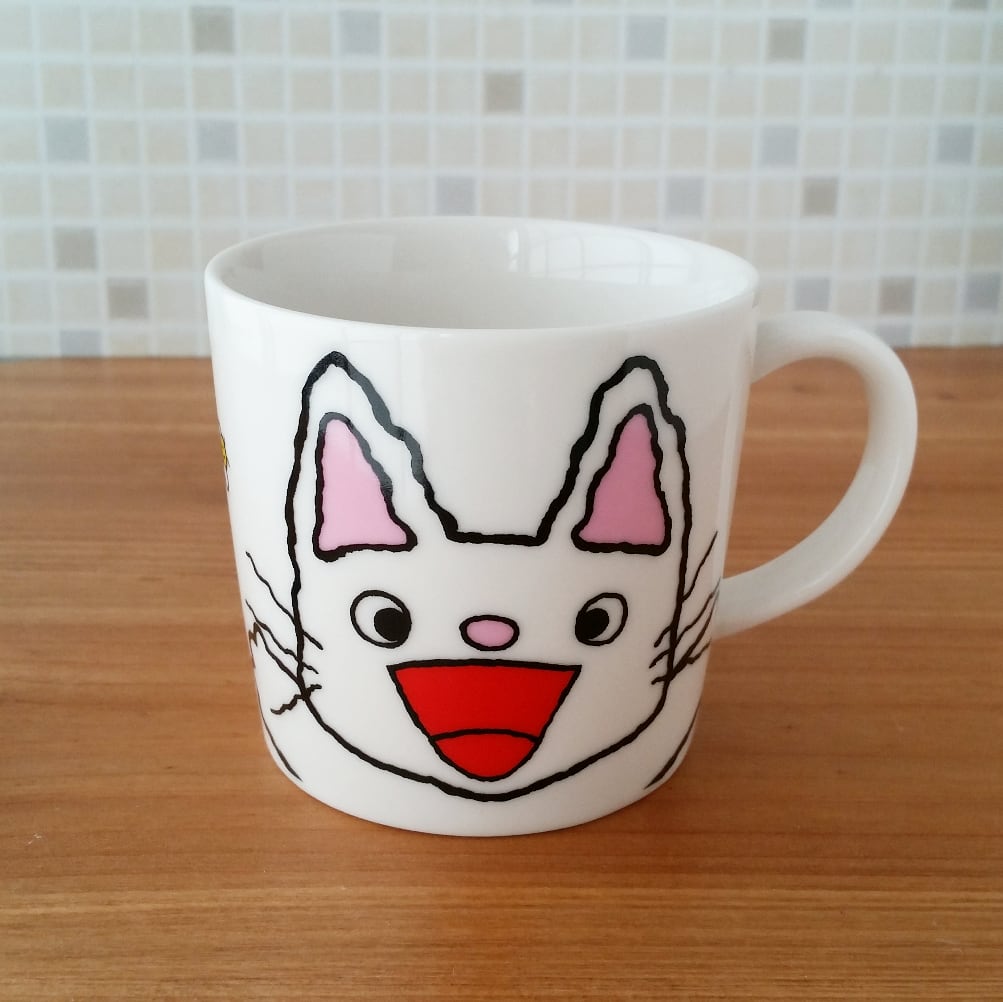 ノンタンのお顔が大きく描かれたマグカップで、後ろは「いないいない…」のポーズ、表は「ばぁ!」のポーズになっている可愛いマグカップです♪