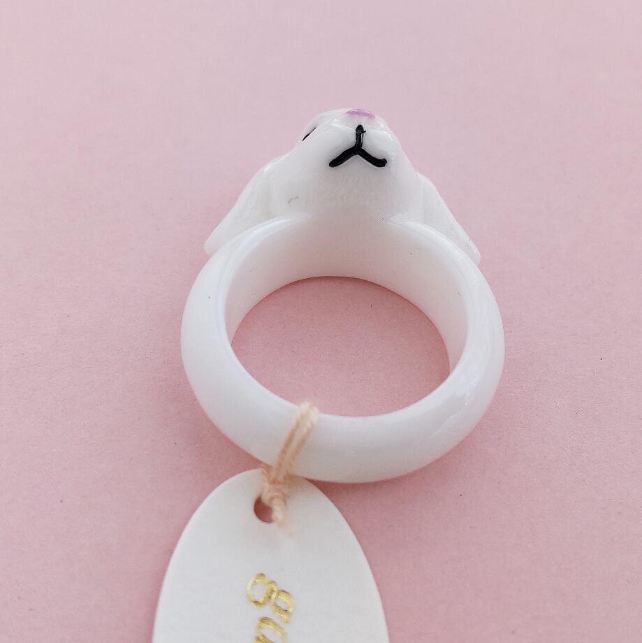うさぎの愛らしいお顔がそのままリングになりました!表情がいつでも見られる可愛いデザインです。こちらは垂れ耳のうさぎちゃん♪