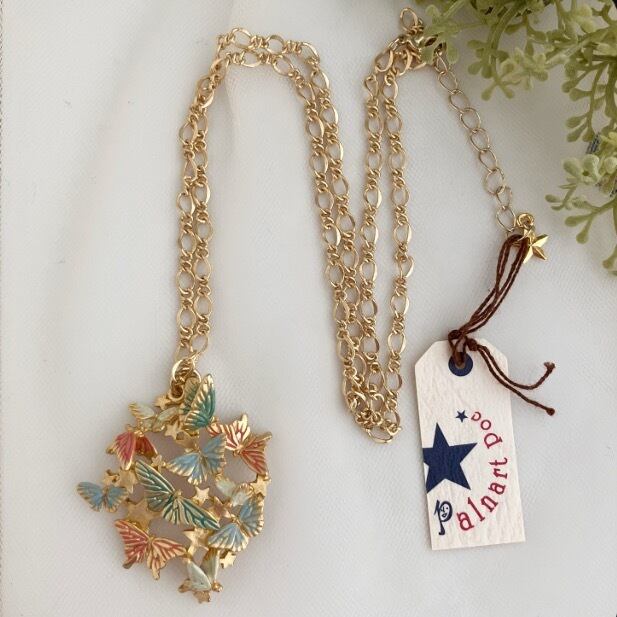 様々な種の蝶が飛び交う幻想的な光景をイメージしたネックレス。