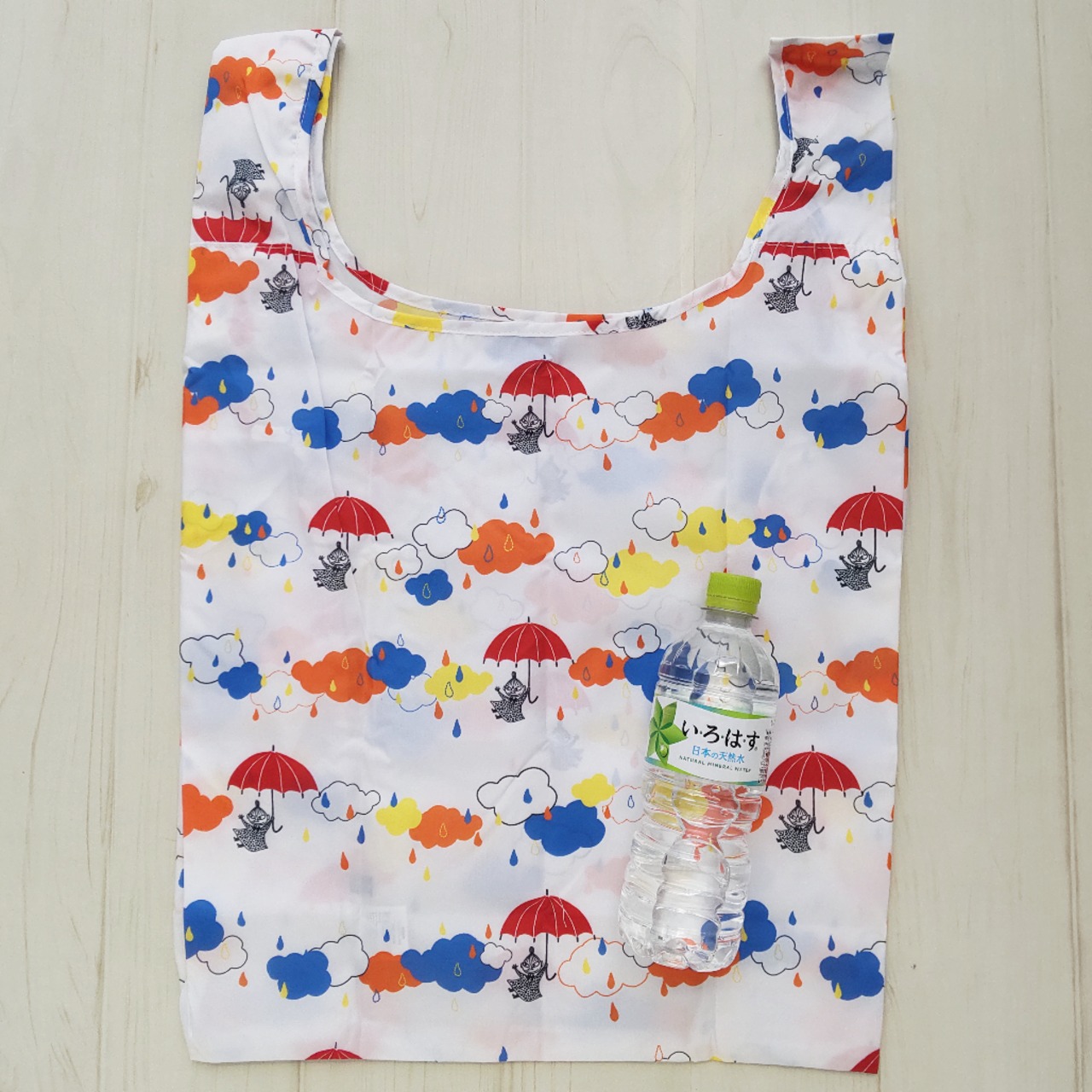 ムーミンのエコバッグです。マチが20cmと広く、たっぷり入るエコバッグです。持ち手も広いので、手が痛くなりにくい!