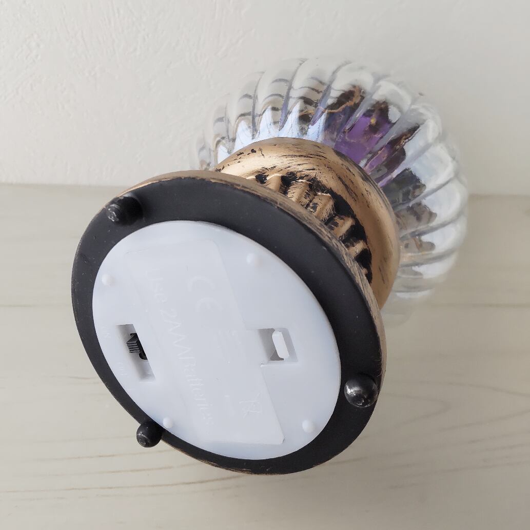 単4電池2本で光るため、煩わしいコードがなく、どこでも飾れる素敵なランプです。