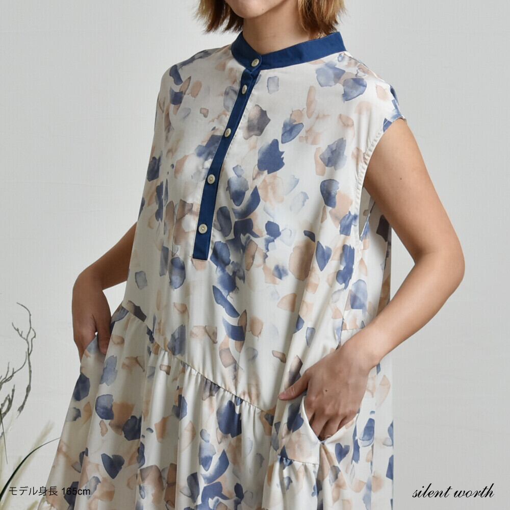 送料無料 SILENT WORTH アシメティアードボカシ柄ワンピース♪