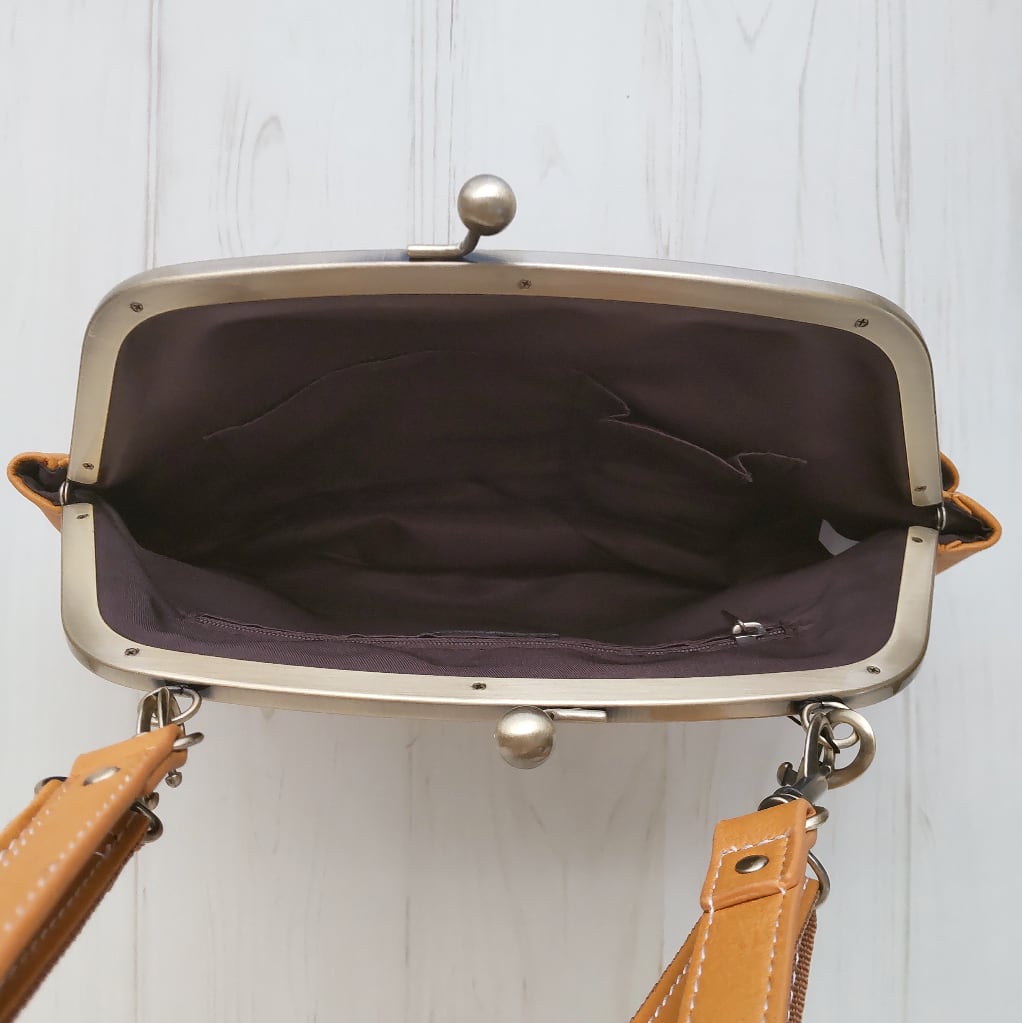 大きめで片手でパチッと開閉がしやすいがま口パーツは一つ一つ手作業で丁寧に仕上げており、
