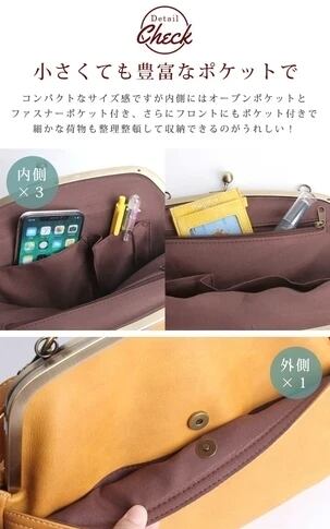 LIZDAYS リズデイズ がま口ショルダーバッグ 2wayタイプ ハンドバッグ マスタード