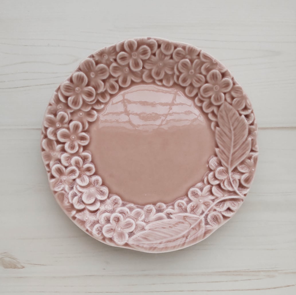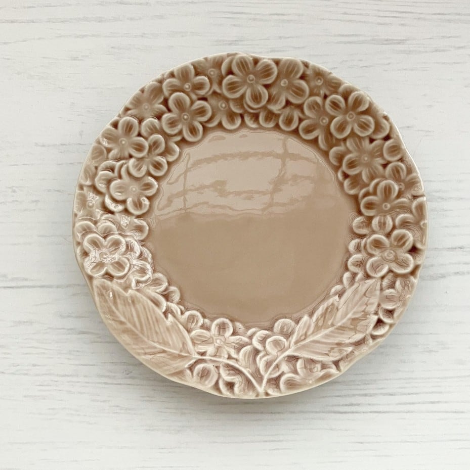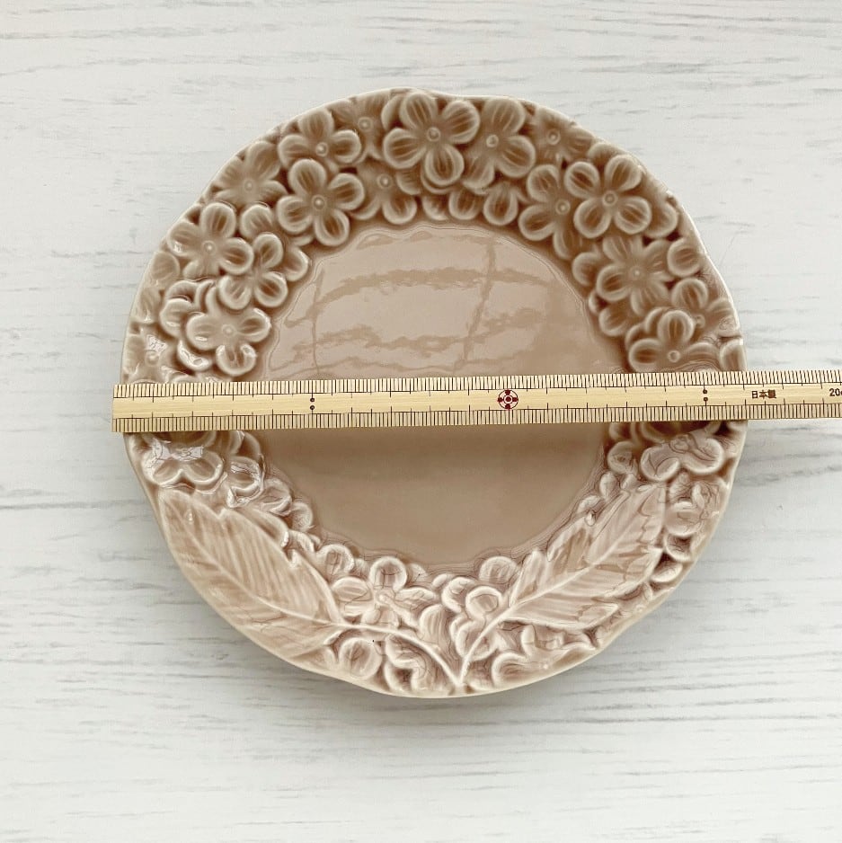 Blossom 16cmプレート ケーキ皿 ピンクベージュ 花 紫陽花 あじさい 美濃焼