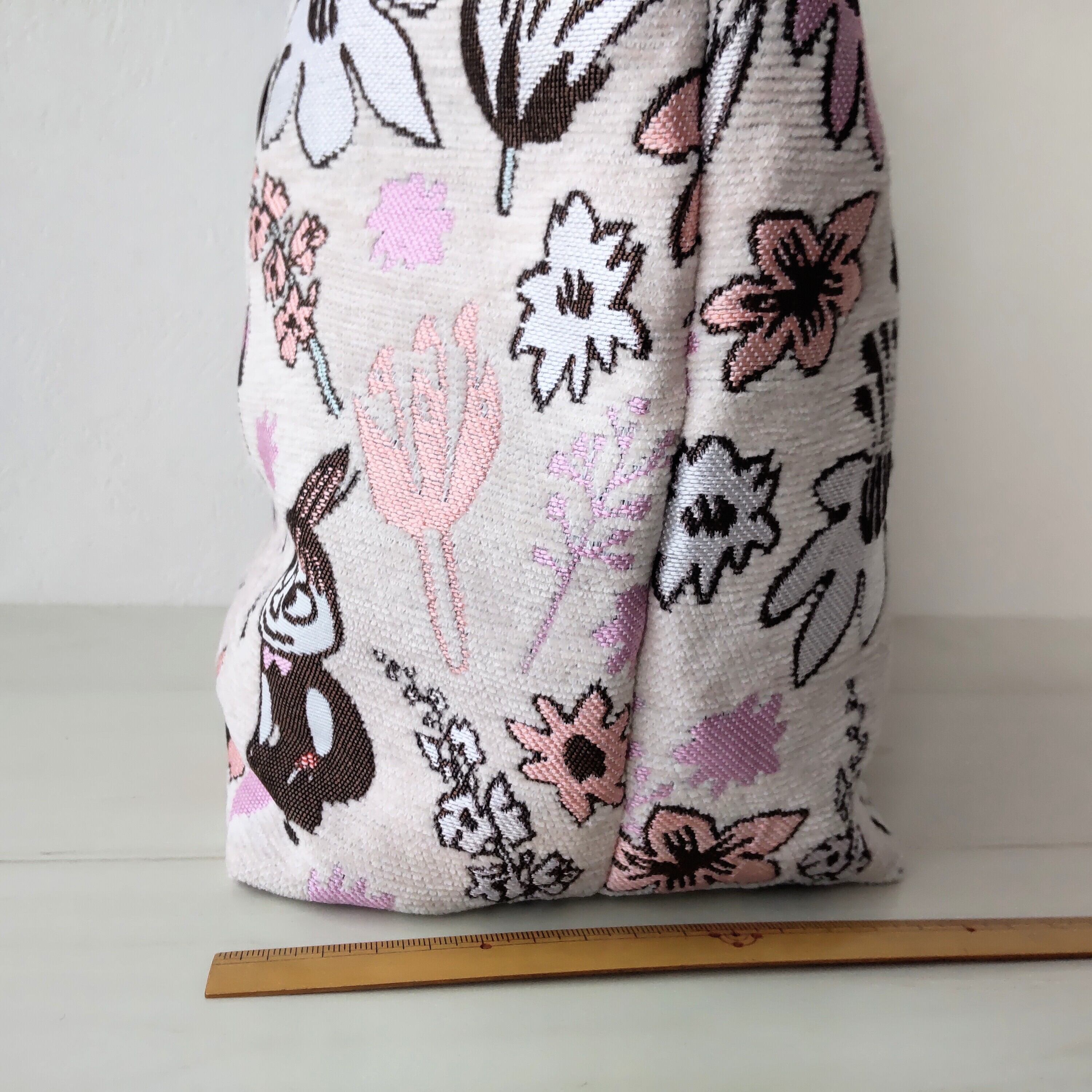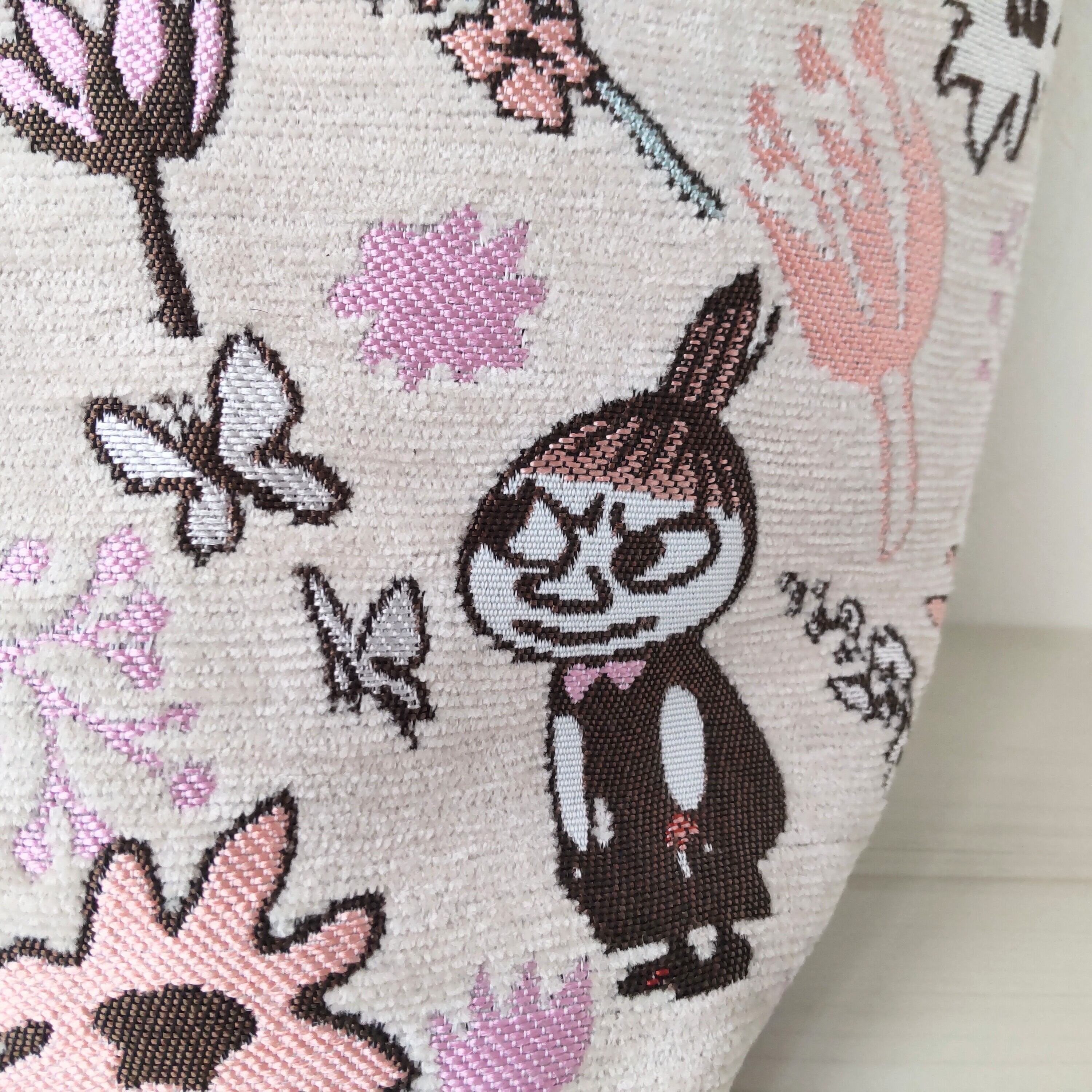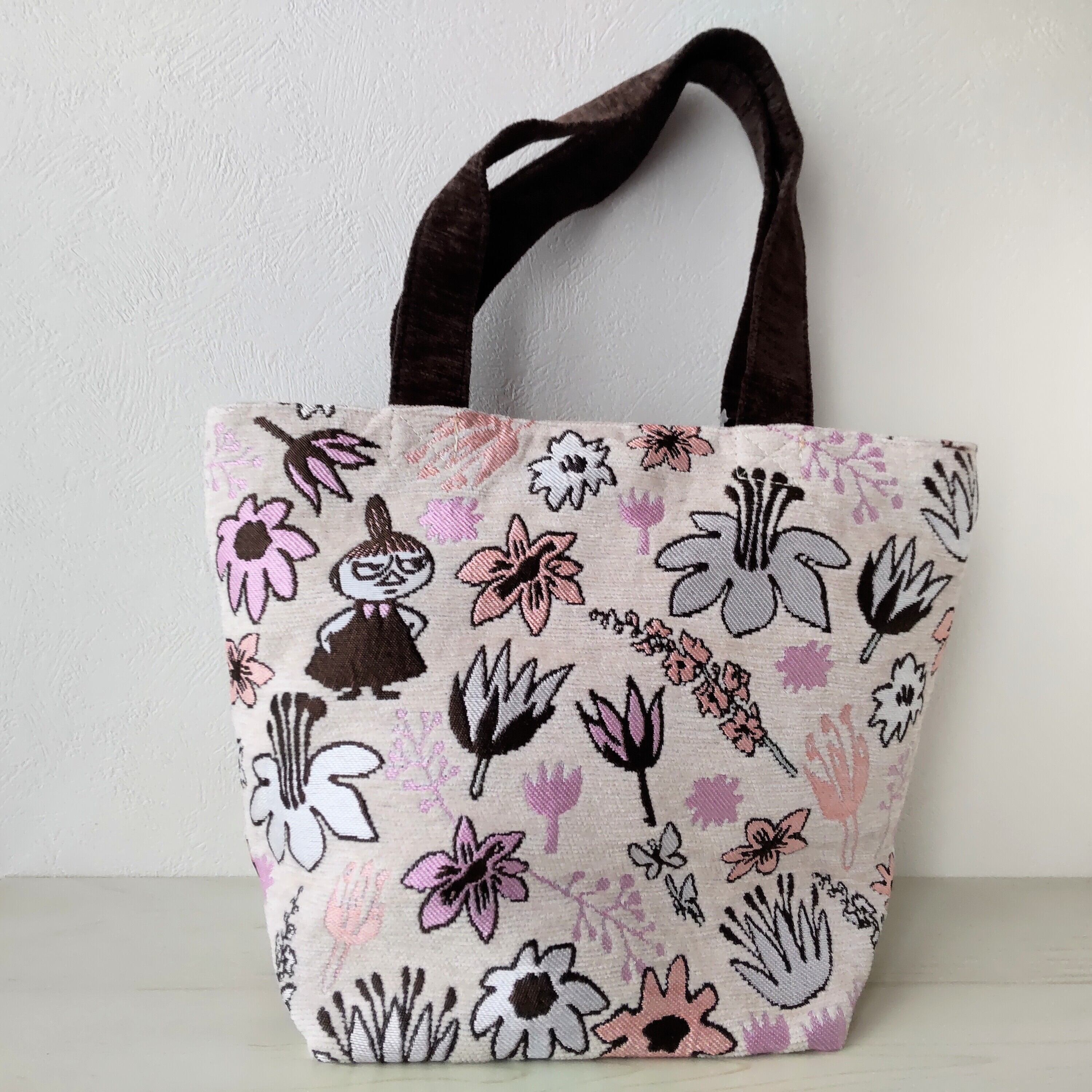 リトルミイと花柄がデザインされたゴブラン織りのバッグです。ゴブラン織りなので高級感があり大人かわいいデザインとなっています。