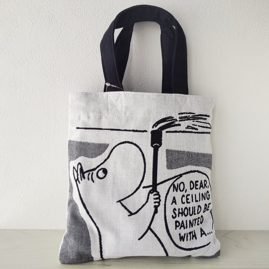 リバーシブルタイプのミニバッグで、表面はPOPなコミック柄、裏返すとニョロニョロ模様になっています。